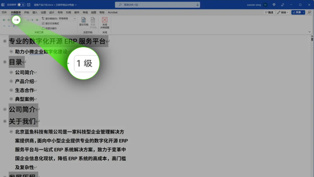 打开 Word 文档,点击视图-大纲: