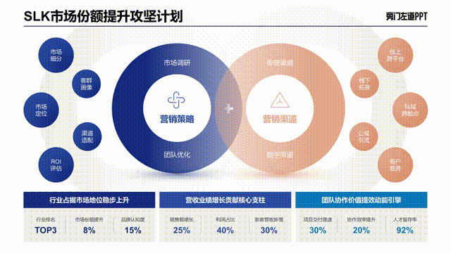 当然,如果必须要用公司的PPT模板,页面排版始终没这么全面,涵盖不了所有内容: