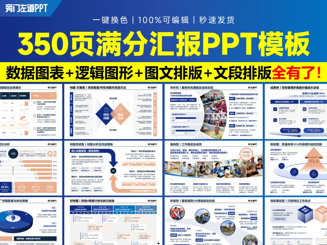 如果没有公司模版也没有关系,可以直接用我这套【350页满分汇报PPT模板】,超好用!在文末就能订阅。