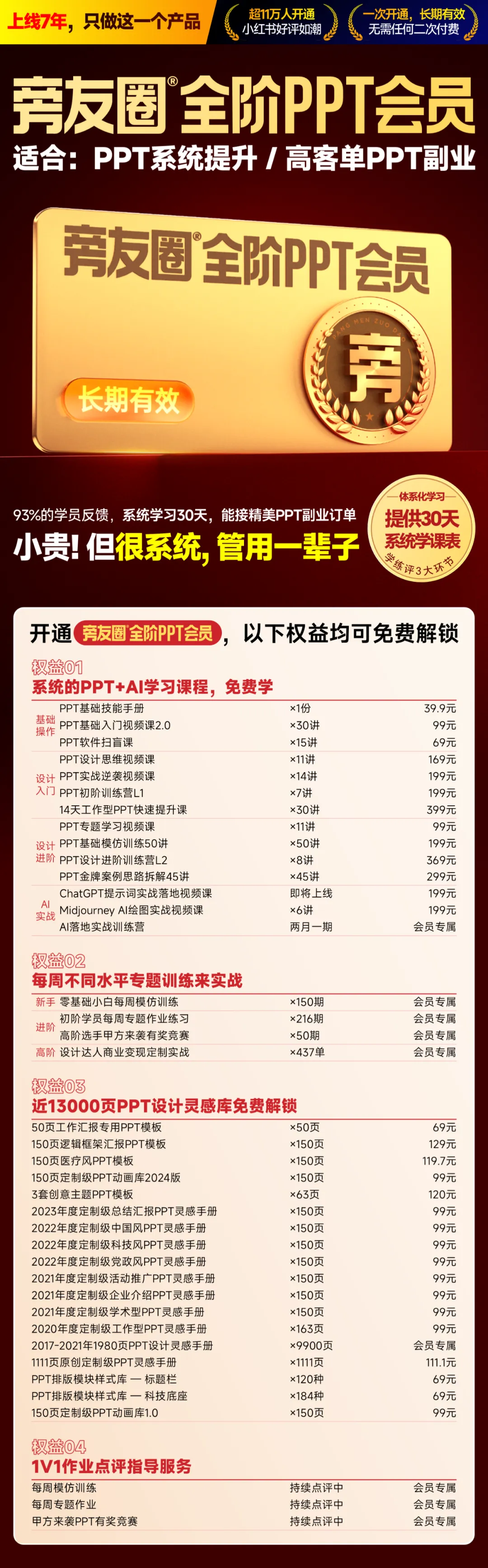 如果你想30天系统提升PPT能力,推荐旁友圈PPT学习会员。适合打算系统学习及想要做PPT副业的朋友。