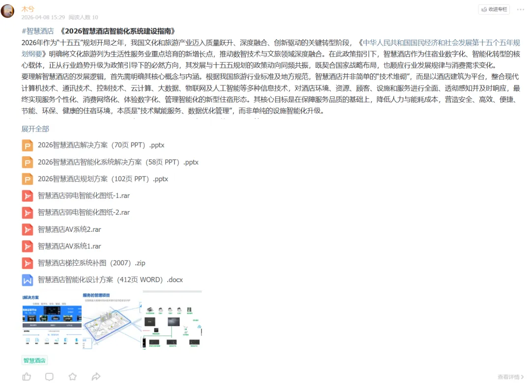 (【数智行业·领地】星球,搜索“智慧酒店 ”标签方案完整版)苹果用户公众号回复“1”加木兮或者直接加木兮(MuxiYuebao0920),享受优惠,加入星球~