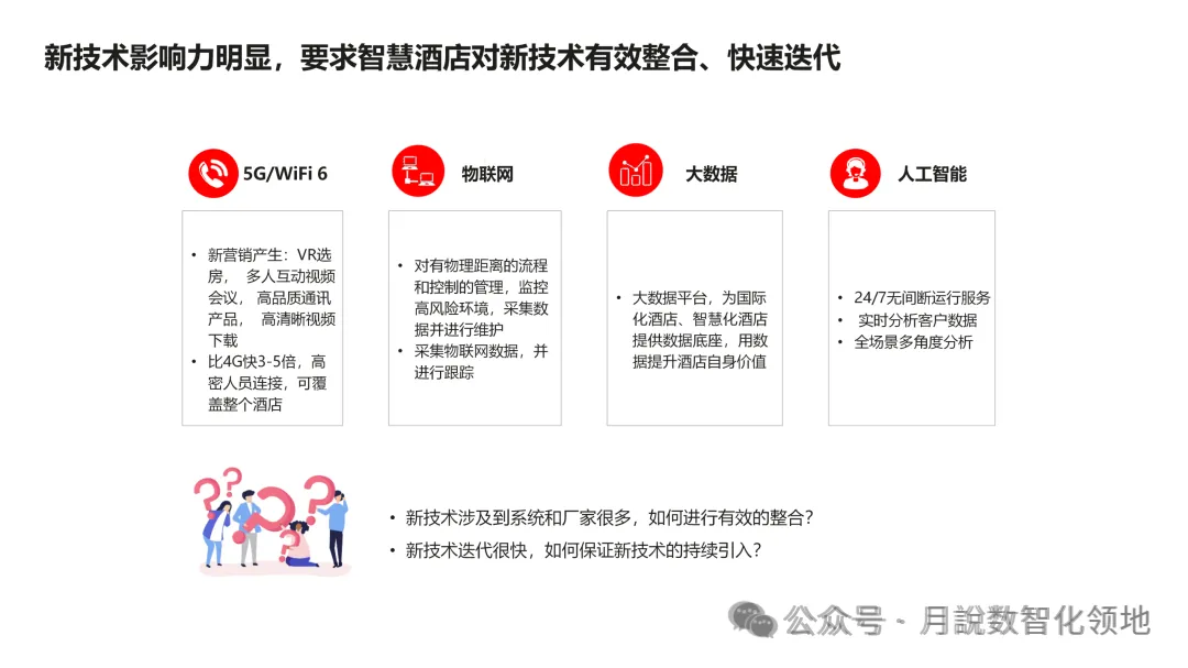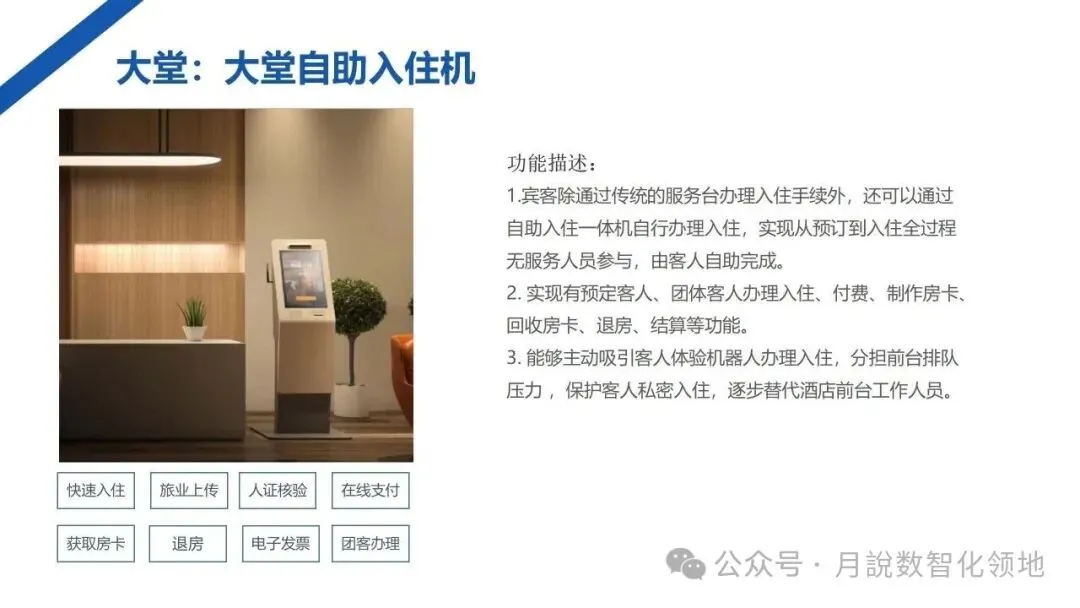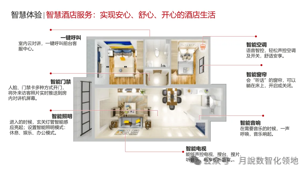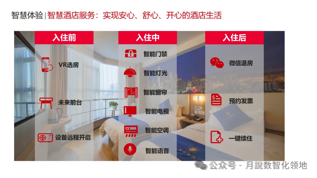 智能门禁、客房控制系统、无接触服务机器人、智能能耗管理、AI 收益管理等