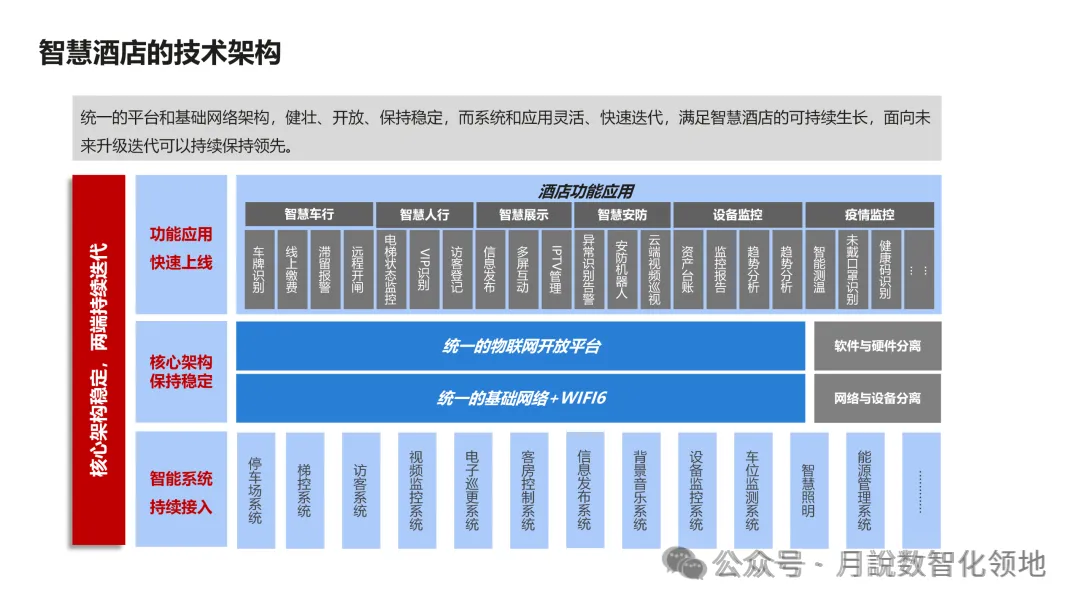 智慧酒店的技术体系可概括为 “1+3+N” 架构:
