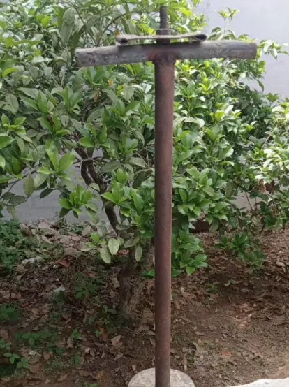 收尾这个铁柱子模样,真要问我也蒙,长得像压井捣地用的杠子,横把子底下沉沉的疙瘩,村里常见,有人说用它打井压地,也有人夯土用得多,咱家那口井就靠村里几个男人抬着它一下一下地砸出来,后来被手扶拖拉机的水泵淘汰,这根大铁杠听到响就想起当年全村人都使劲那股劲。