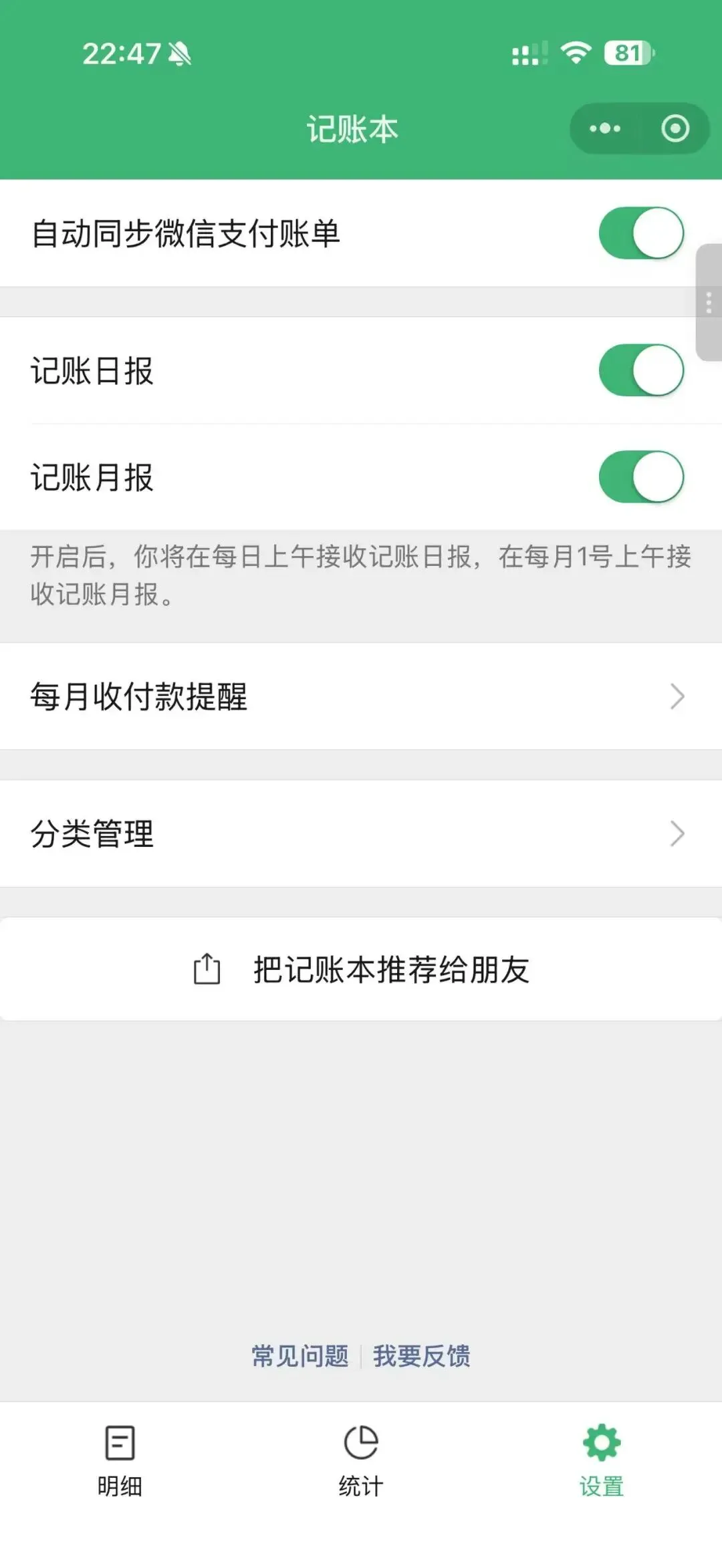 他最大的好处就在于和微信账单绑定在一起,实时同步,只要是通过微信付款的,就能自动记入到每日账单,非常方便,不需要额外再手动记录,解放了大量的精力。