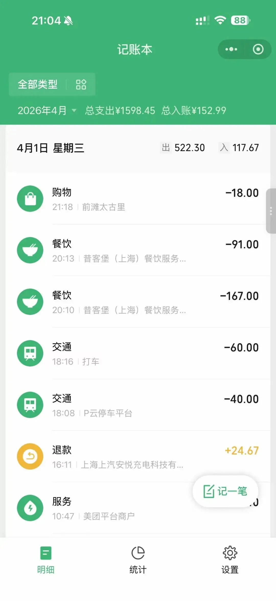 所以,我现在每一笔消费,只要能通过微信支付,就一律走微信付款,因为这样我就能无感的记录我的每一笔消费,不需要任何手动记录: