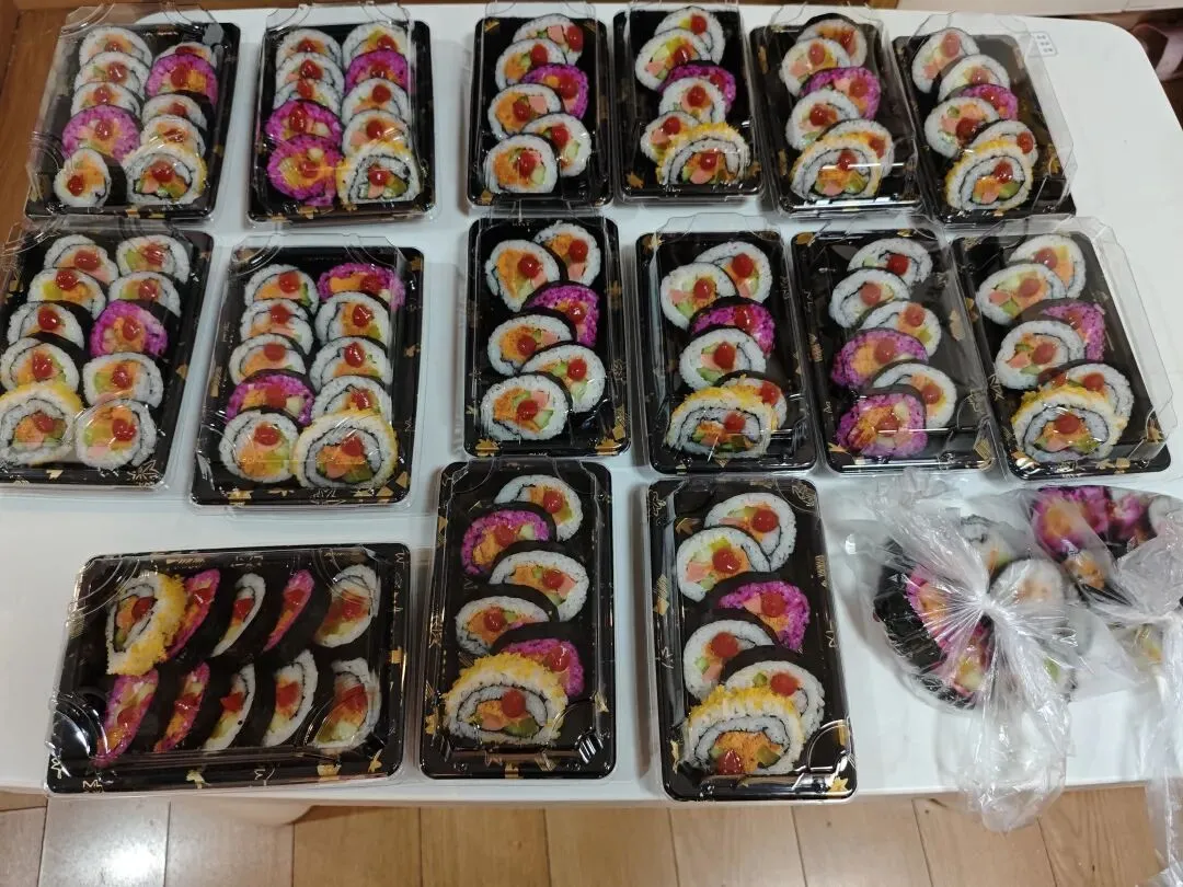 我在小区卖手作吃食已经十多天了,今天只卖寿司。第一次大量做,不太顺手,忙活了大概3个小时才弄完。