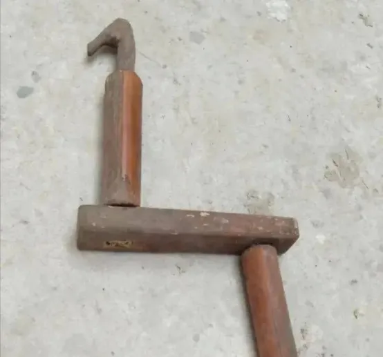 这东西叫起钉器,实心木头把,顶上嵌了个老铁钩,乡下人动手修家什、拆木头,少不了用它,有人说这形状像个拐把,有的是起钉撬板,有的是绳索拉紧专用,我爸干活时老爱夹一支在裤腰带上,眼见他咔一下拉住木板子,铁钩子一挑一撬板子就下来了,手重了还容易把人带歪了,记得有一回我趁大人不注意学着去撬,结果“咯噔”一下差点摔个大跟头,这种小工具,干活的师傅都少不得带着。