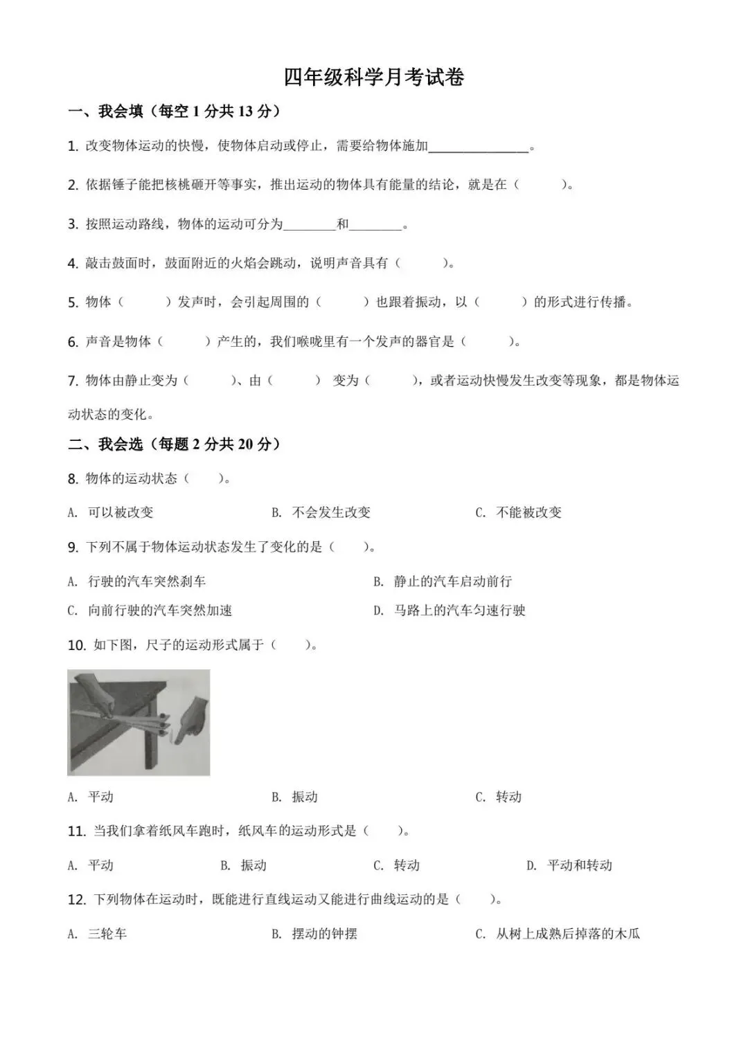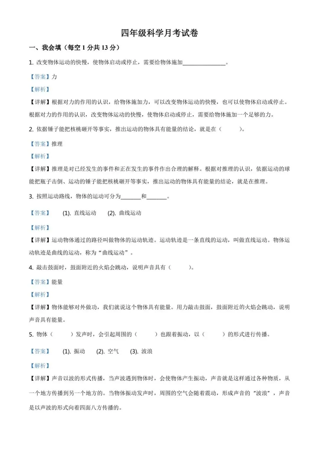 这份试卷紧扣教材,涵盖声音、天气等高频考点,是对孩子本月学习成果的全面检验。通过考试,可及时发现孩子知识漏洞,调整学习策略。
