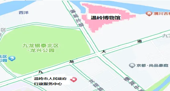 19.为了探寻经典的足迹,同学们决定去参观温岭博物馆。我们有一张路线图,假设你现在就在温岭市人民政府行政服务中心(九龙大道555号,距离横湖路约125米),请你根据路线图,告诉同学们可以怎么到达博物馆(横湖北路,距离九龙大道约120米)(字数120左右。)