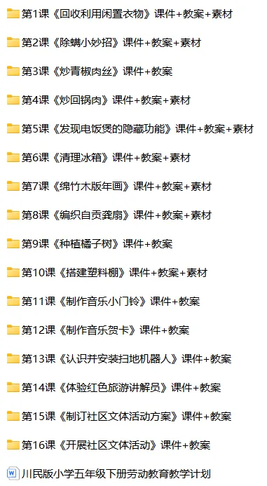 【电子版】2026春 川民版小学五年级劳动教育下册 核心素养教案+课件+计划(全套下载) 可编辑打印