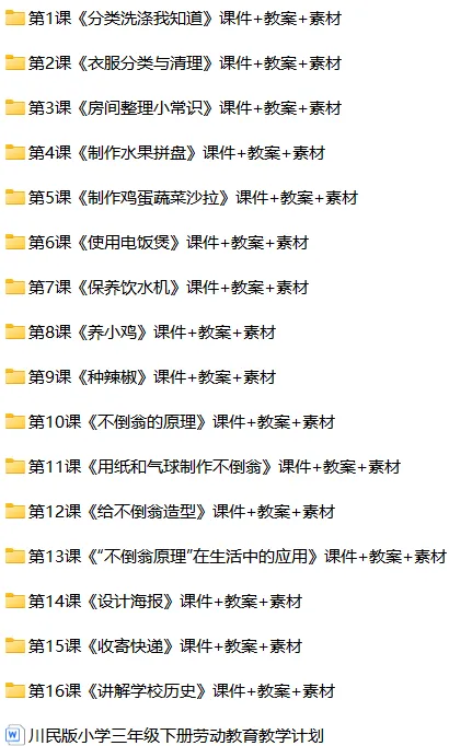 【电子版】2026春 川民版小学三年级劳动教育下册 核心素养教案+课件+计划(全套下载) 可编辑打印