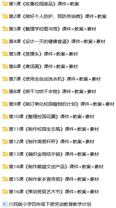 【电子版】2026春 川民版小学四年级劳动教育下册 核心素养教案+课件+计划(全套下载) 可编辑打印