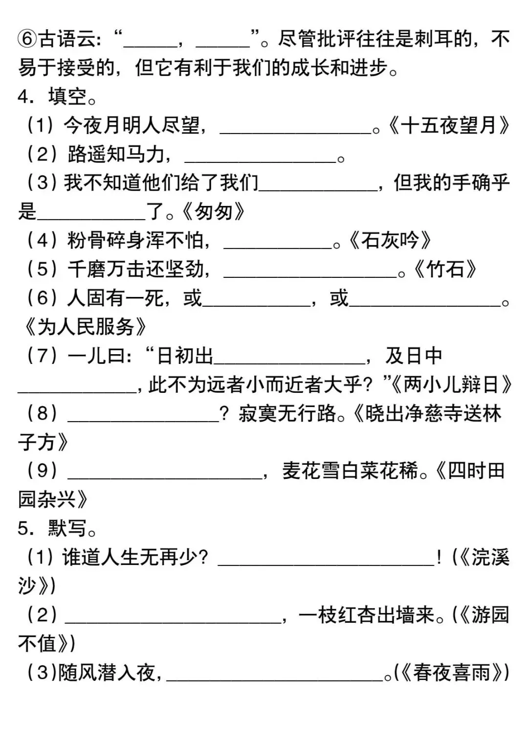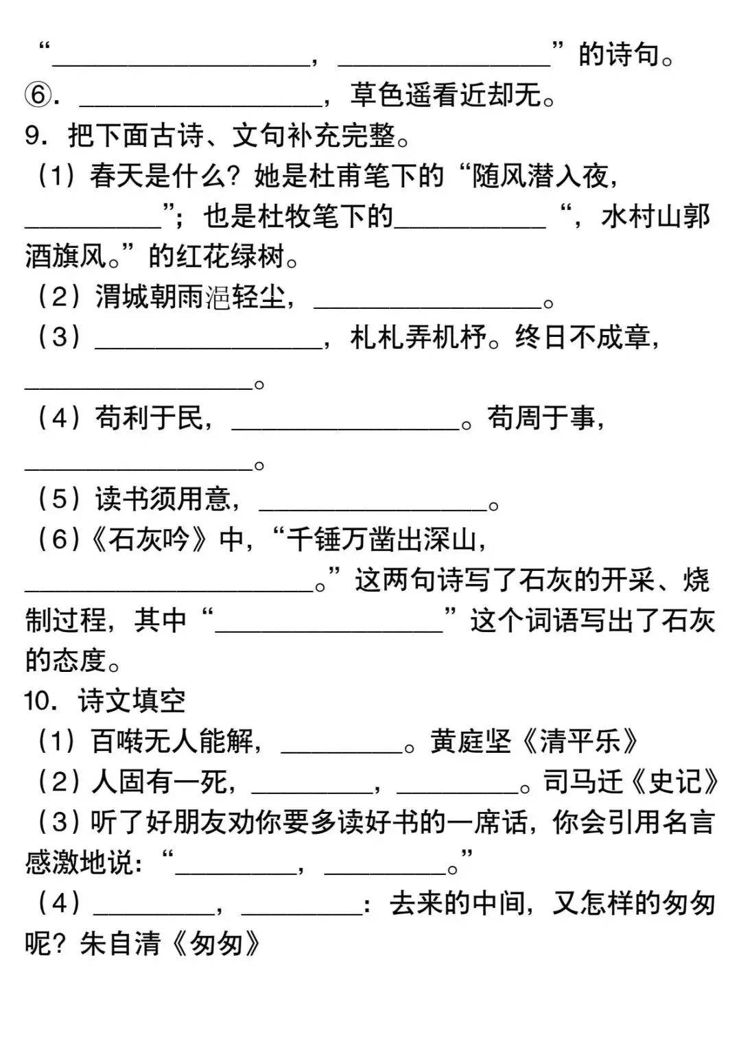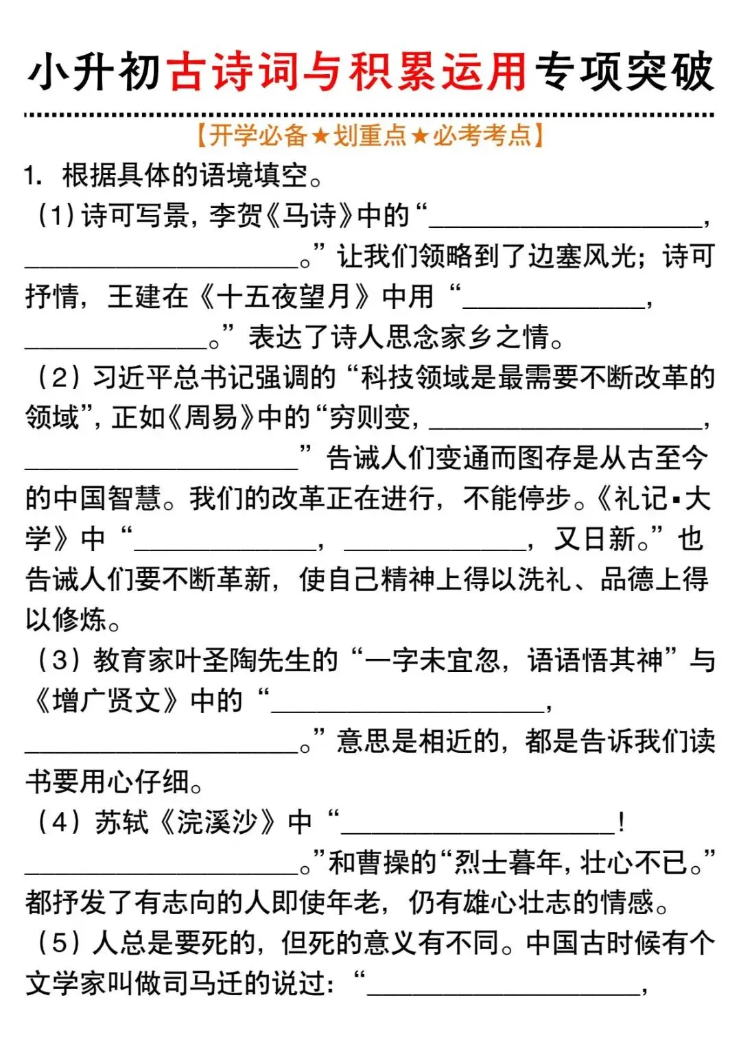 小升初|古诗词必考重点积累与专项练习|PDF可打印