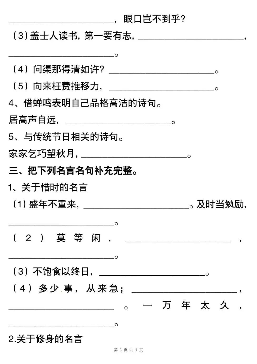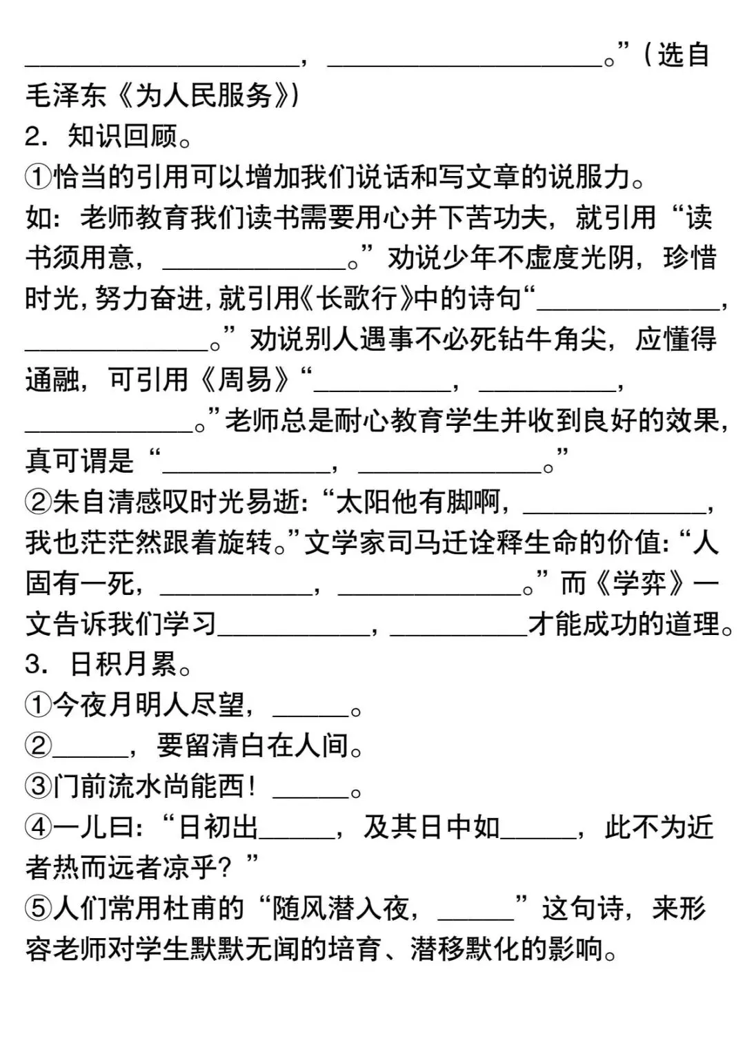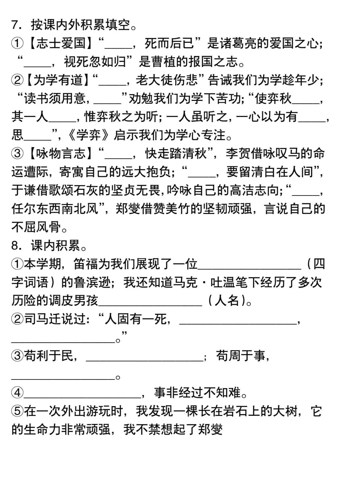 小升初|古诗词必考重点积累与专项练习|PDF可打印