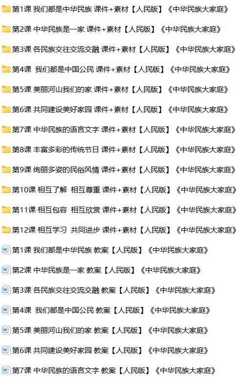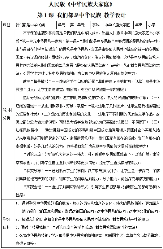 【电子版】2026春 人民版小学《中华民族大家庭》 教案 +课件+素材(全套下载) 可编辑打印