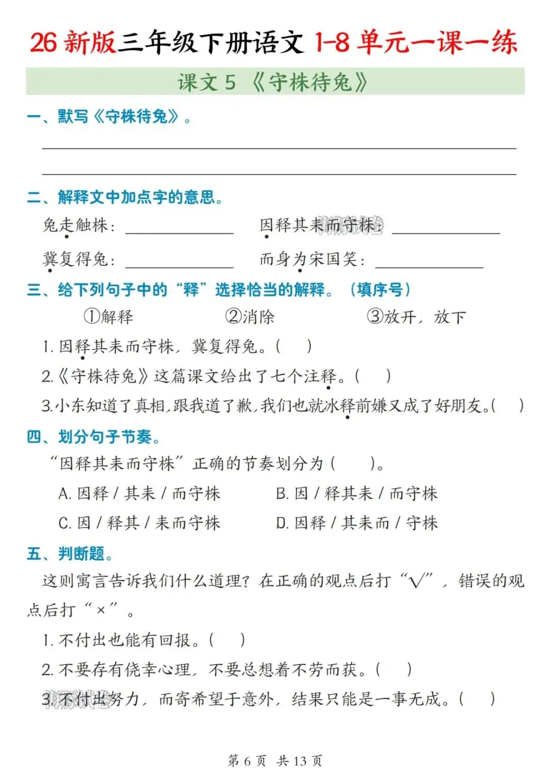 三年级(下)语文1-8单元一课一练(PDF版可打印)