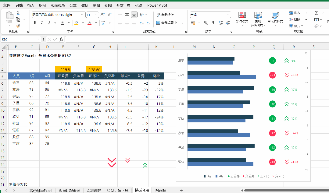 这一节是猪爸爸学excel图表之数据对比条形图下篇