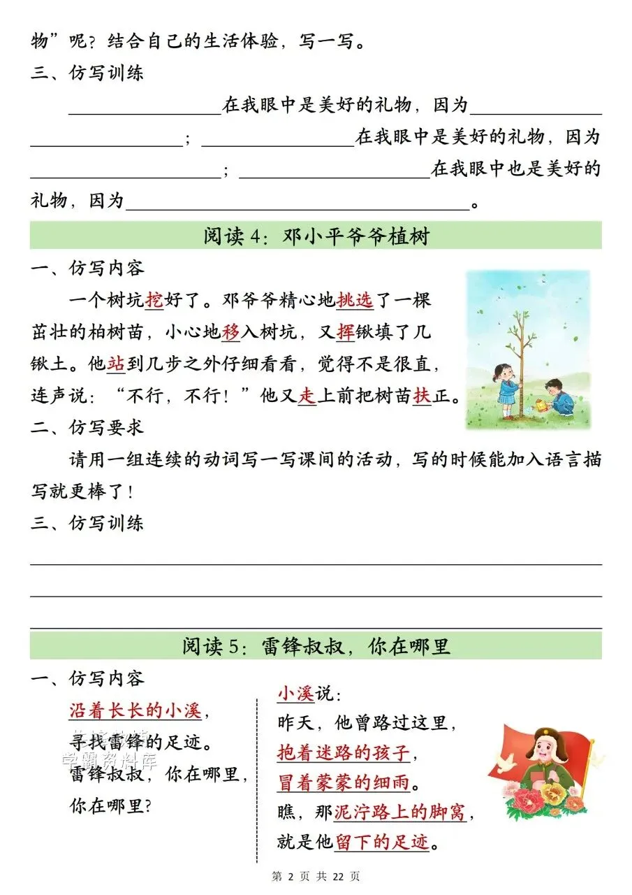 二年级下册语文|同步仿写小练笔(可下载打印)