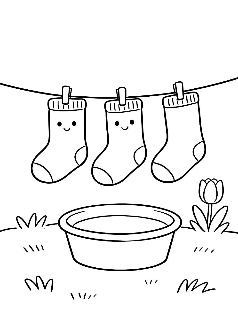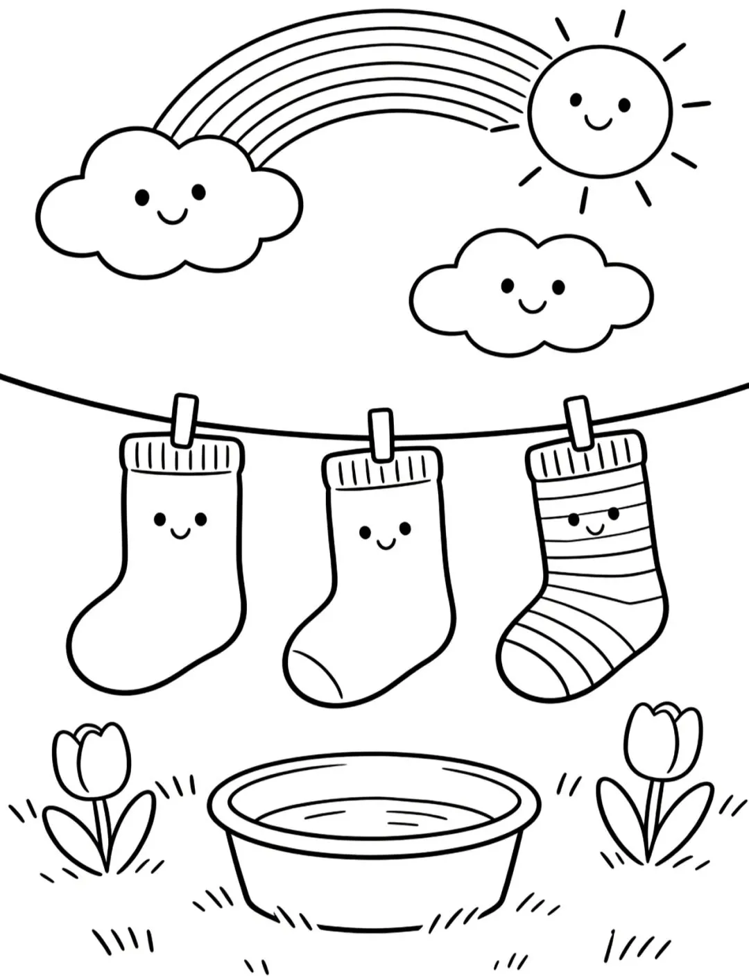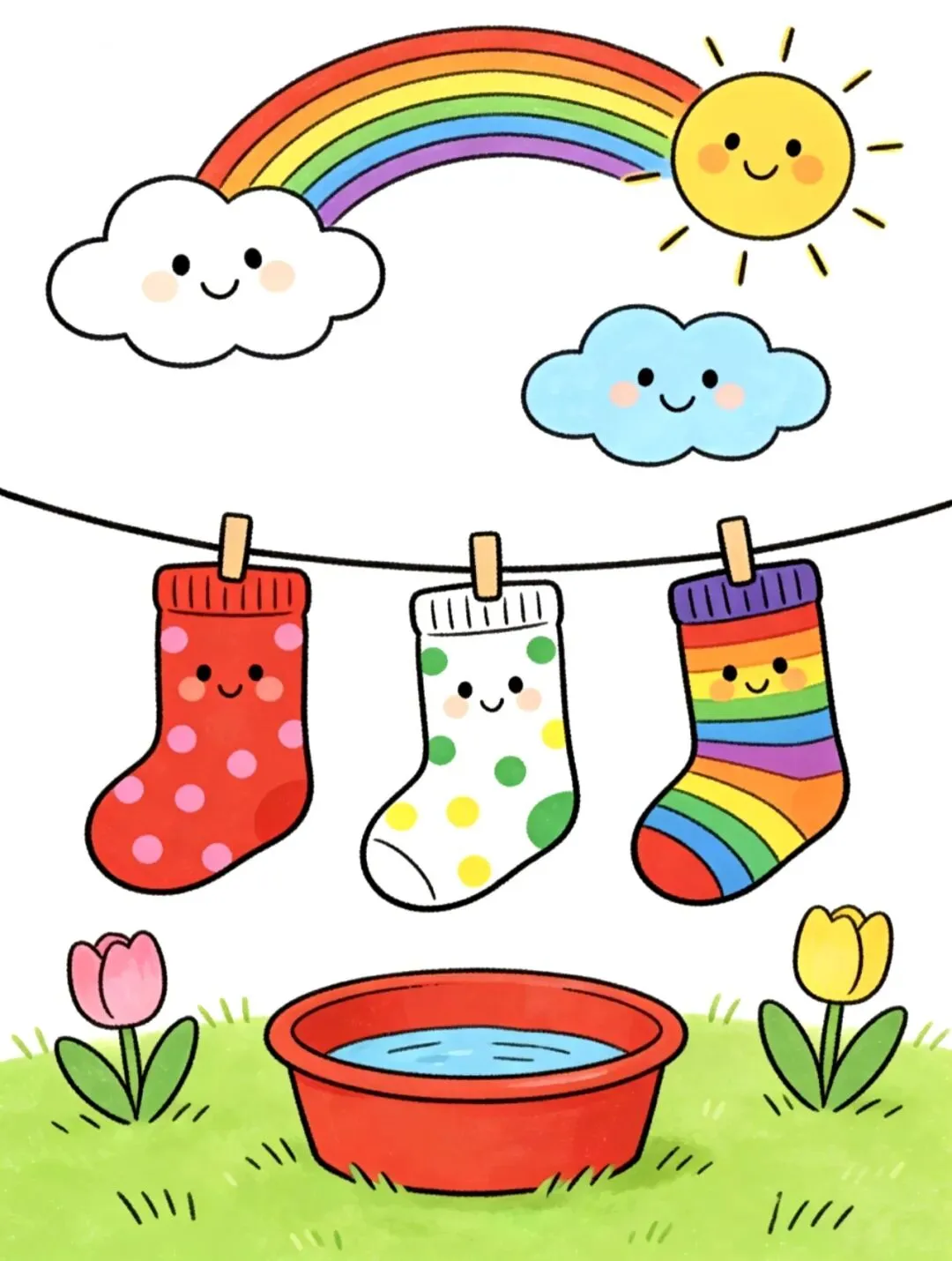 五一主题画|晒袜子(可打印素材+涂色参考图)