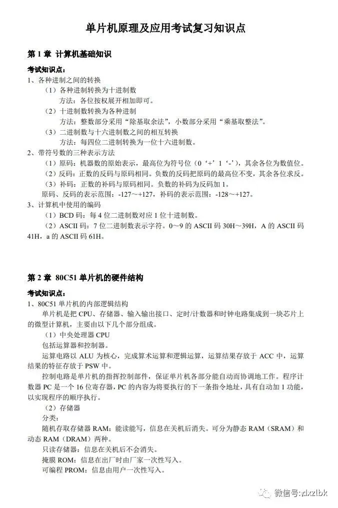 全套单片机原理期末复习资料PDF:思维导图+知识点+笔记整理+题库,助你一周复习完,高分通过单片机原理期末考试!永不挂科
