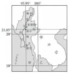 2025年 3月 28 日 14时 20分,缅甸发生 7. 9级地震,震中位于曼德勒市以南约 60km(见下图) ,地震 造成震中附近重大生命财产损失,同时引发海啸现象,图示甲、乙海域均出现一定程度的海啸。据此