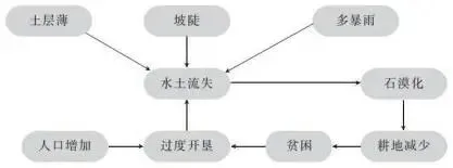 我国南方地区石灰岩广布,为喀斯特地貌形成提供了物质基础。下图示意我国南方喀斯特山区石漠化 恶性循环过程。据此完成 14~16题。