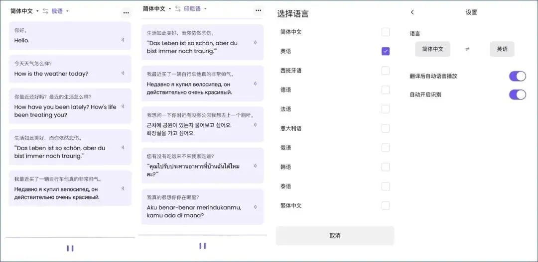 它目前支持多达10多种语言,包括:中文、英语、泰语、印尼语、俄语、法语、德语、意大利语、韩语、日语等。