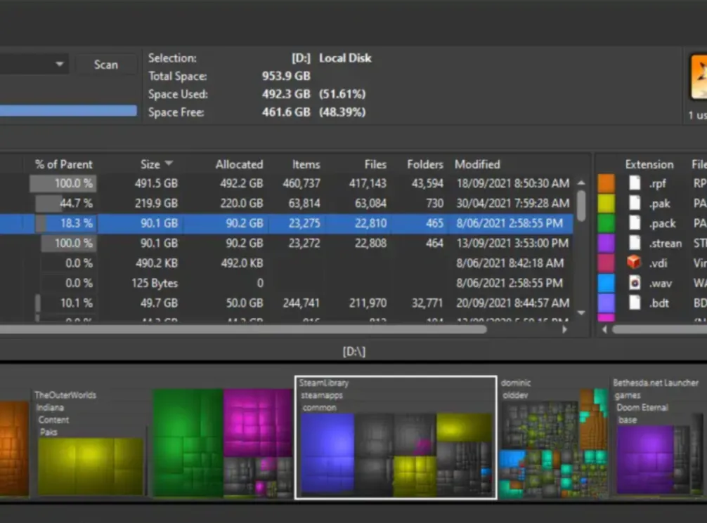 它可以迅速找出硬盘中的大文件或文件夹,扫描后会呈现出文件和文件夹的大小及其层级关系。