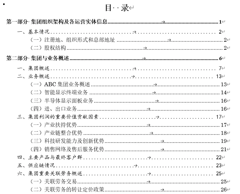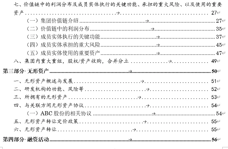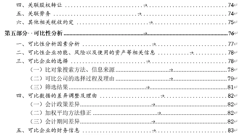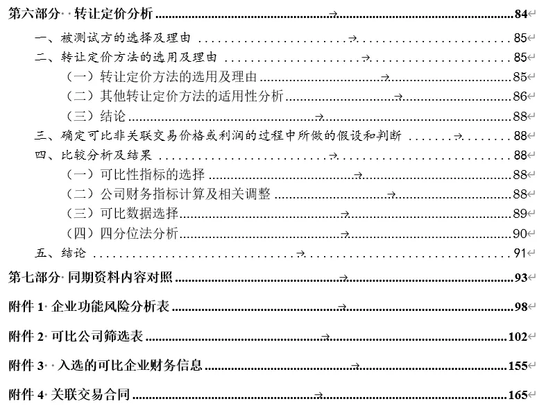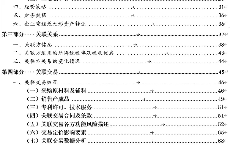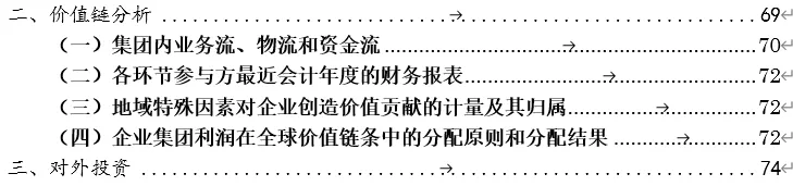 包括关联交易流程、关联交易数据、功能风险分析、交易定价影响要素、价值链分析、对外投资、股权转让、关联劳务等.