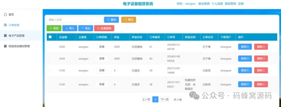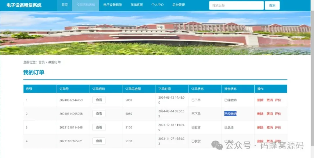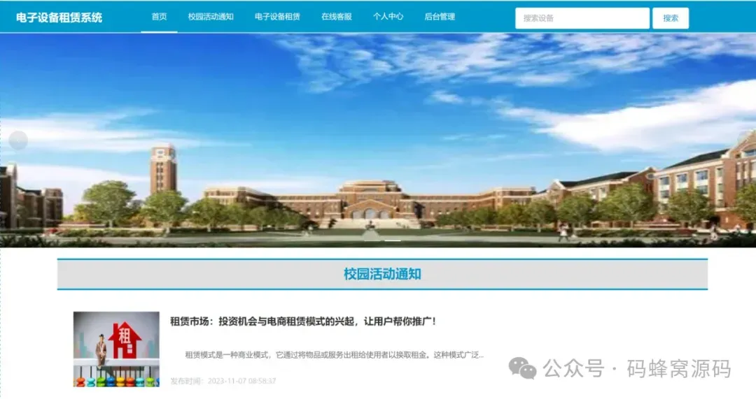 本课程演示的是一款 基于SpringBoot+Vue的校园电子设备租赁系统,主要针对计算机相关专业的正在做毕设的学生与需要项目实战练习的 Java 学习者。