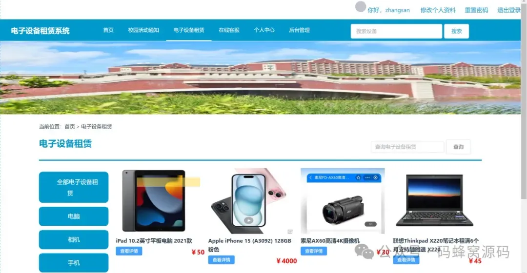 【含文档+PPT+源码】基于SpringBoot+Vue的校园电子设备租赁系统