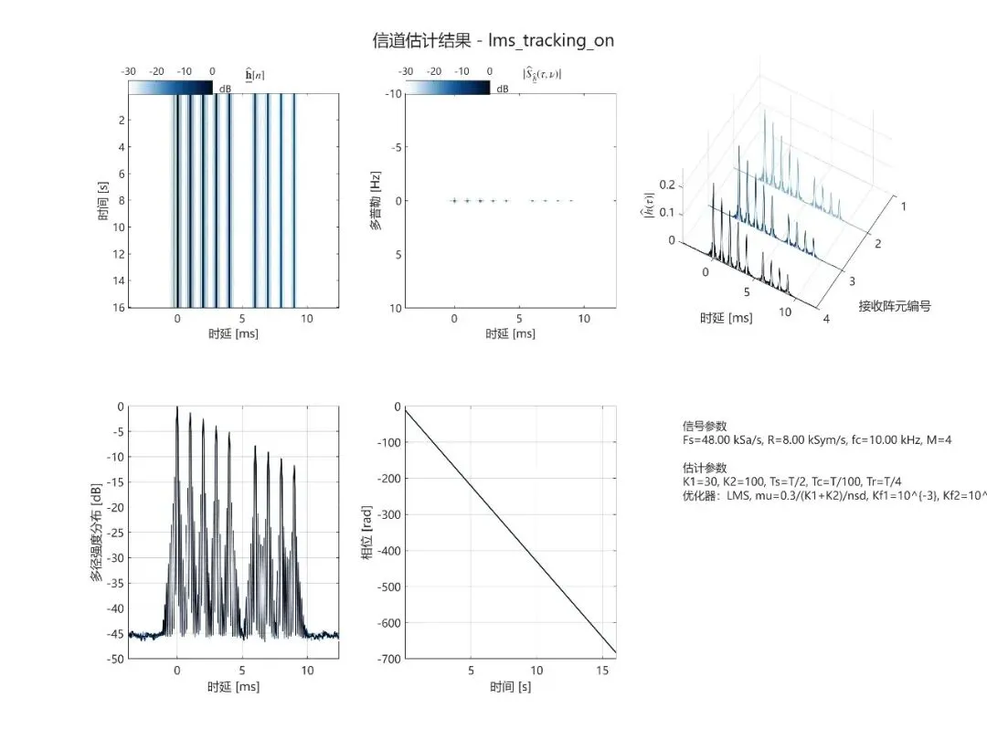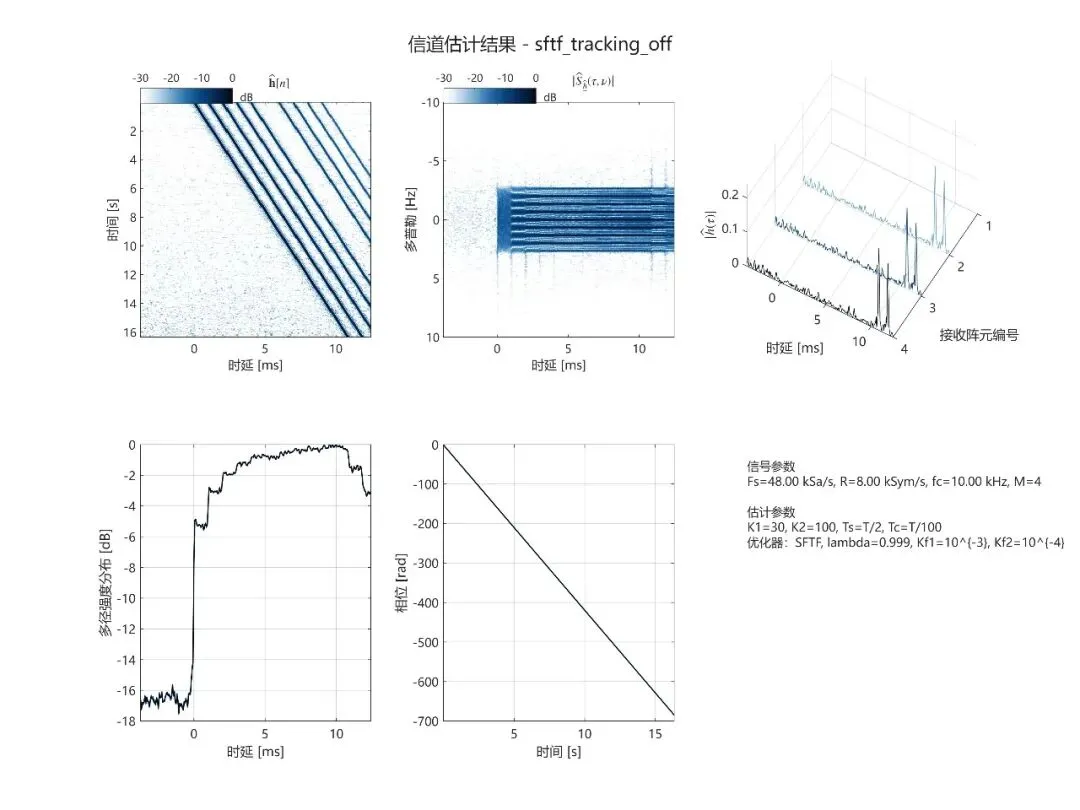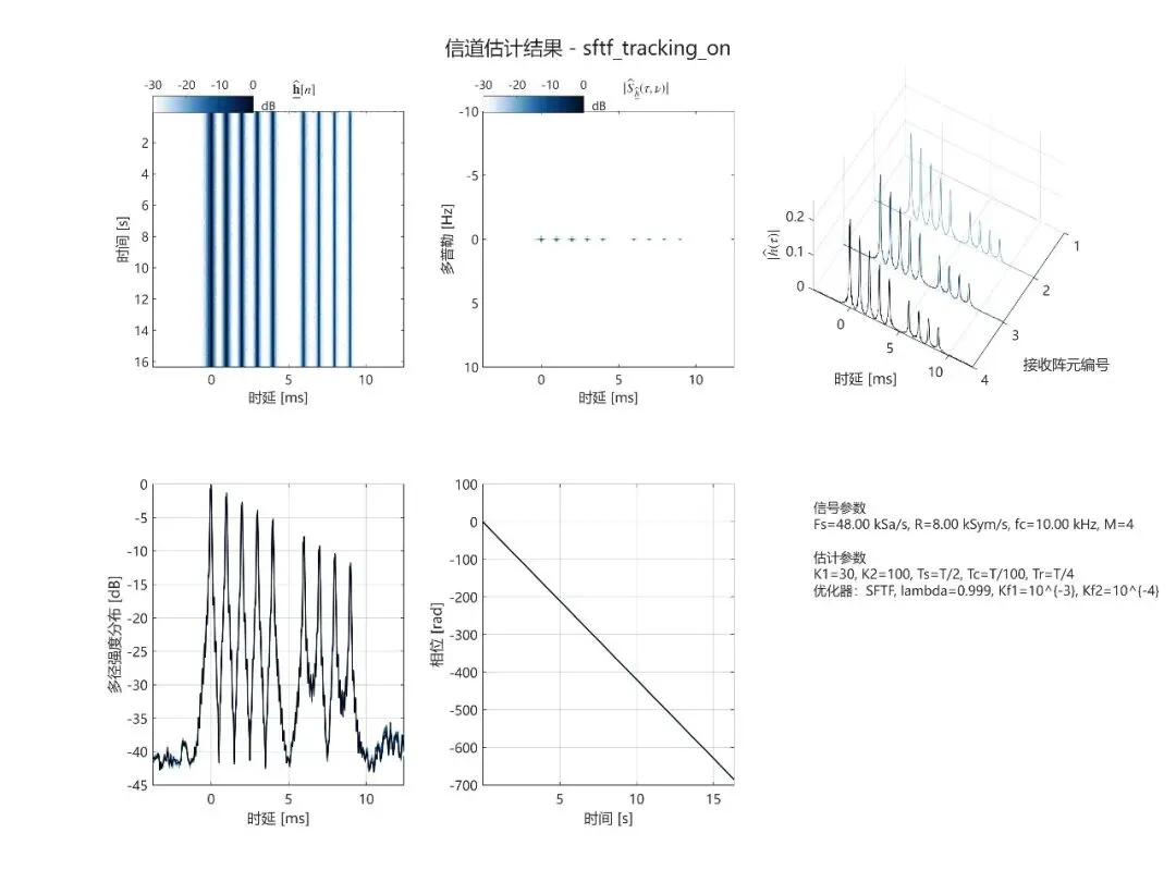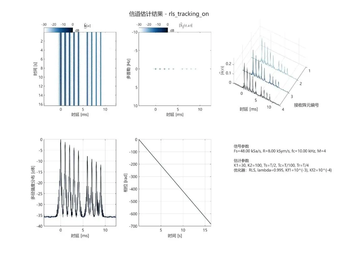完整覆盖时变信道估计主链:训练信号生成、接收合成、同步重采样、估计更新、相位与时延跟踪。 -