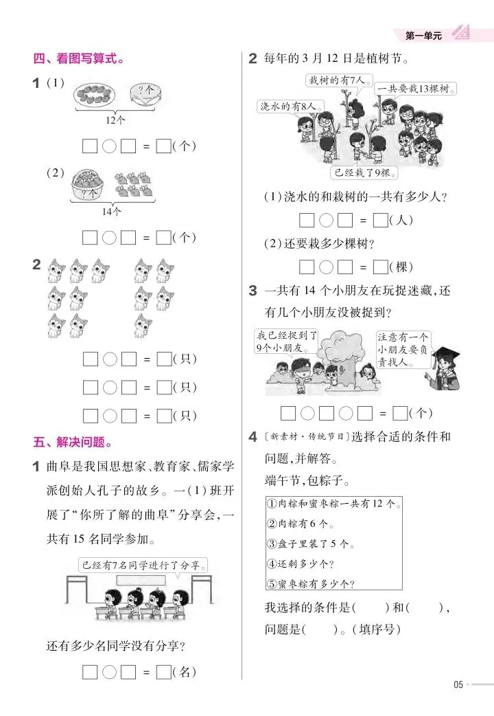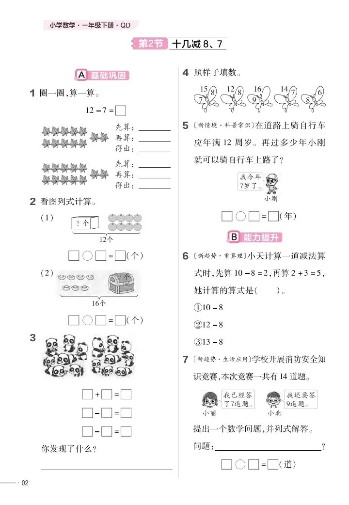 一年级下册数学青岛63版同步练习(完整电子版可打印)