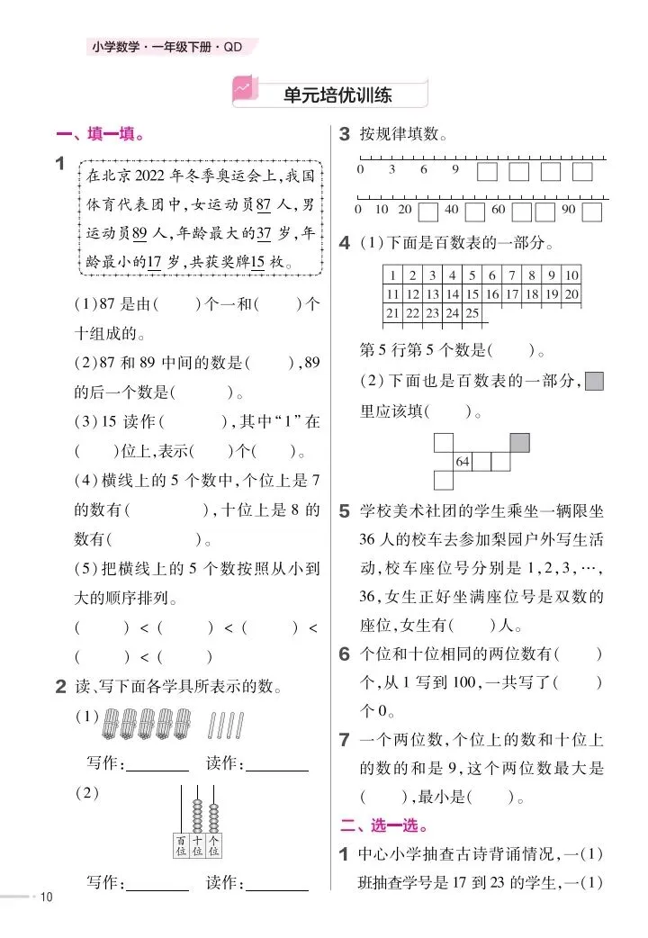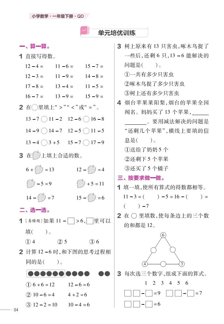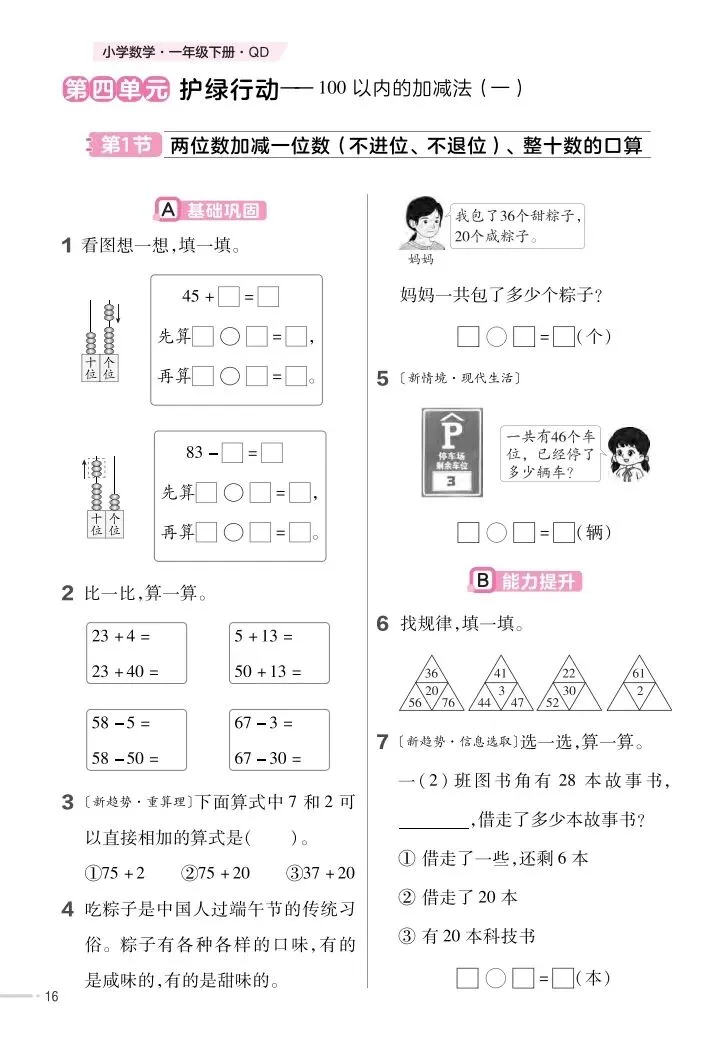 今日份分享26春一年级下册数学青岛63版同步练习(完整电子版可打印)!这份资料已经整理成可打印版本,方便孩子随时翻看学习,建议家长先收藏,再转发给身边有需要的家庭,一起帮助孩子高效学习~