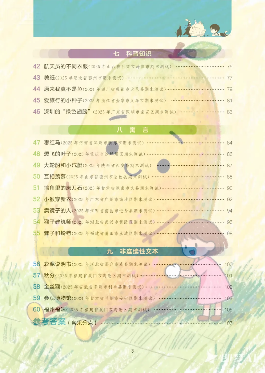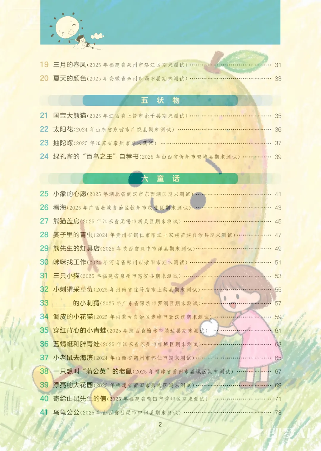 阅读真题60篇二下语文,共38页,电子版可下载可打印,这份资料围绕二年级下册语文阅读训练整理,适合家长日常给孩子进行同步巩固与专项提升使用,内容可结合真题练习帮助孩子熟悉阅读题型、提升理解与分析能力,也涵盖多个核心知识点与专项训练内容,便于孩子在练习中逐步积累方法、增强语文阅读能力,需要的家长可以尽快下载打印出来,让孩子练一练。