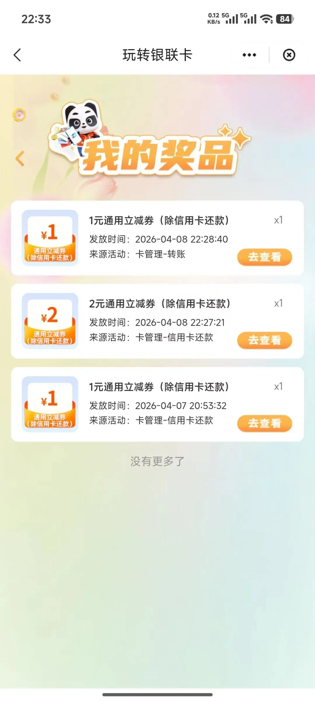 我昨天抽了一次,今天抽了2次,纵火获得4块立减金,