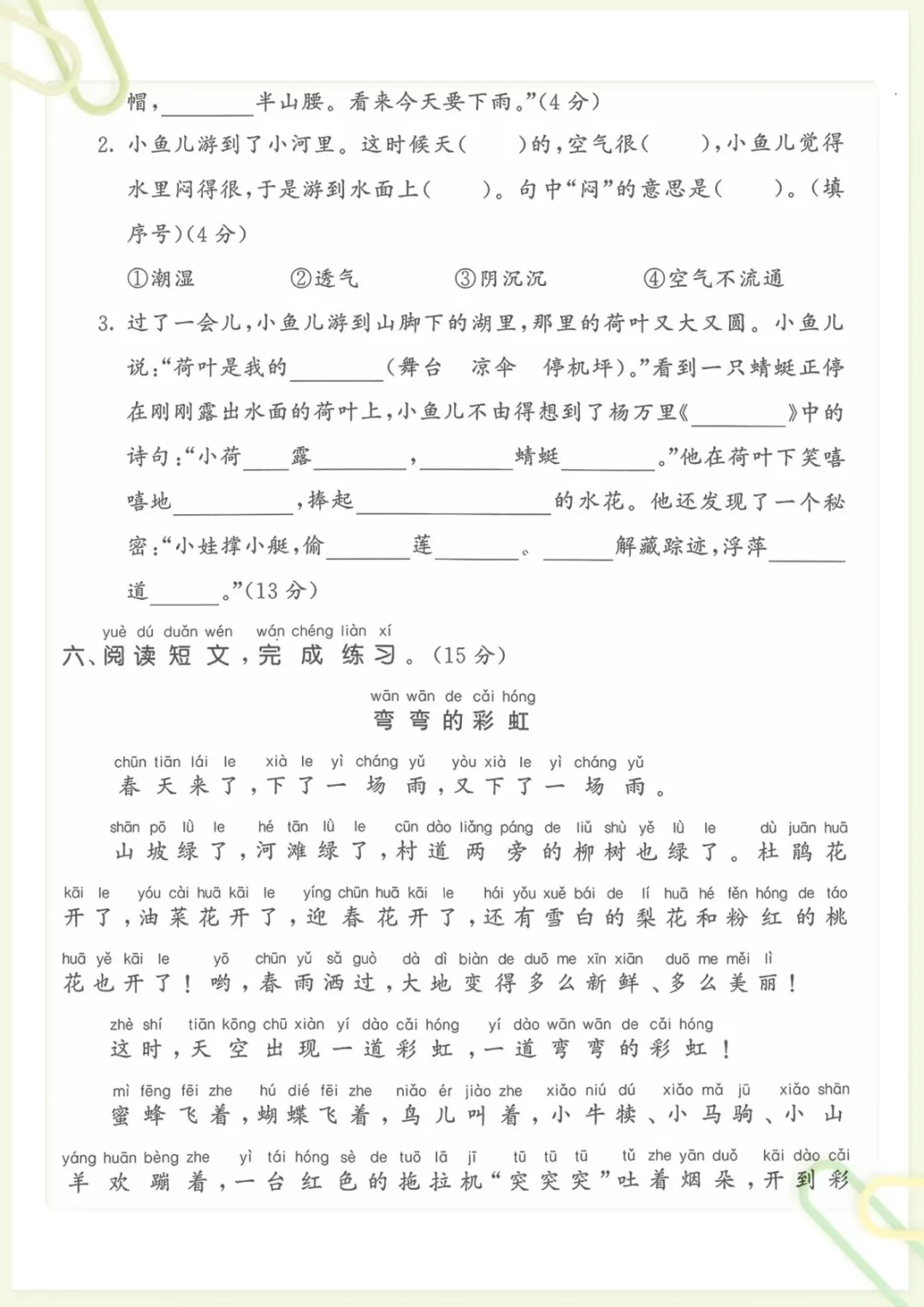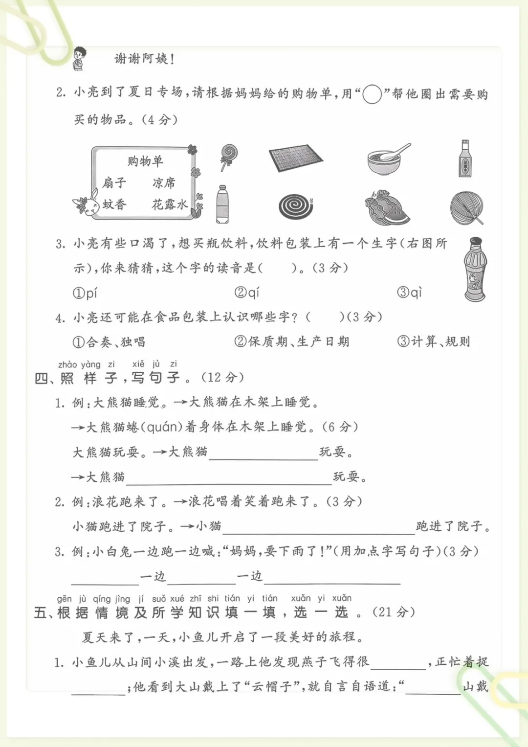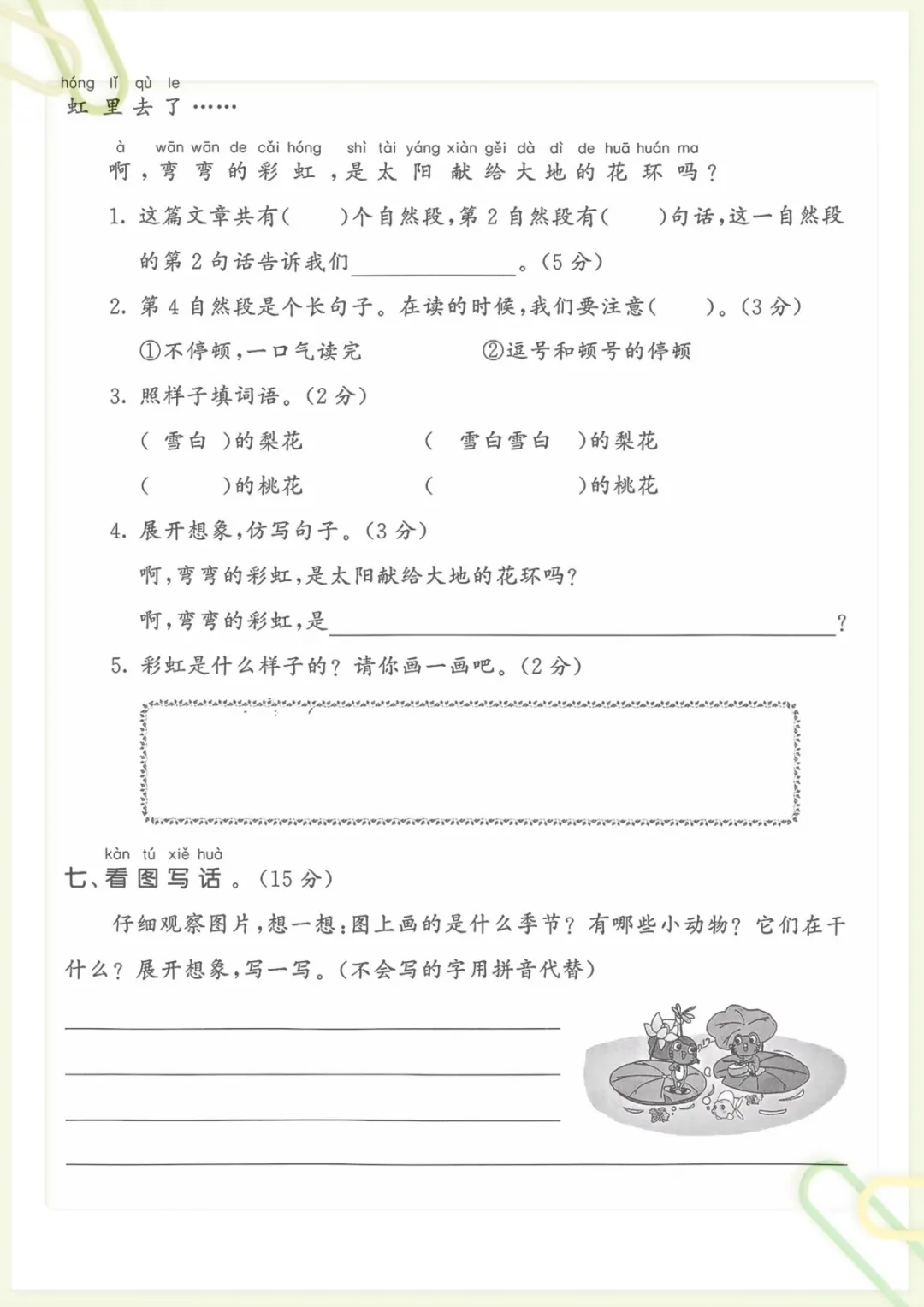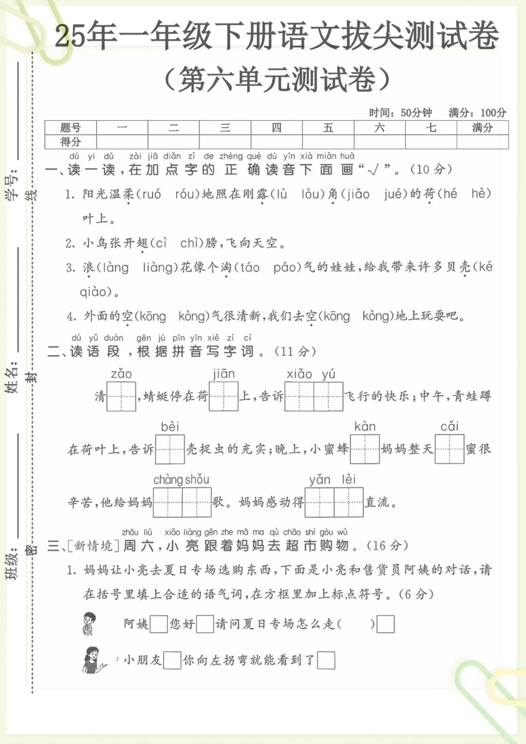一年级下册语文《第六单元1》,共5页,电子版可下载可打印,这份练习资料围绕一年级下册语文第六单元内容整理,涵盖多个核心知识点与专项训练内容,适合孩子在课后同步巩固、查漏补缺,帮助进一步熟悉单元重点、提升基础运用能力。需要的家长可以及时下载打印出来,让孩子练一练,更好地夯实本单元所学内容。