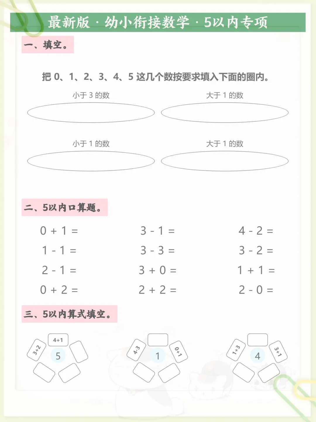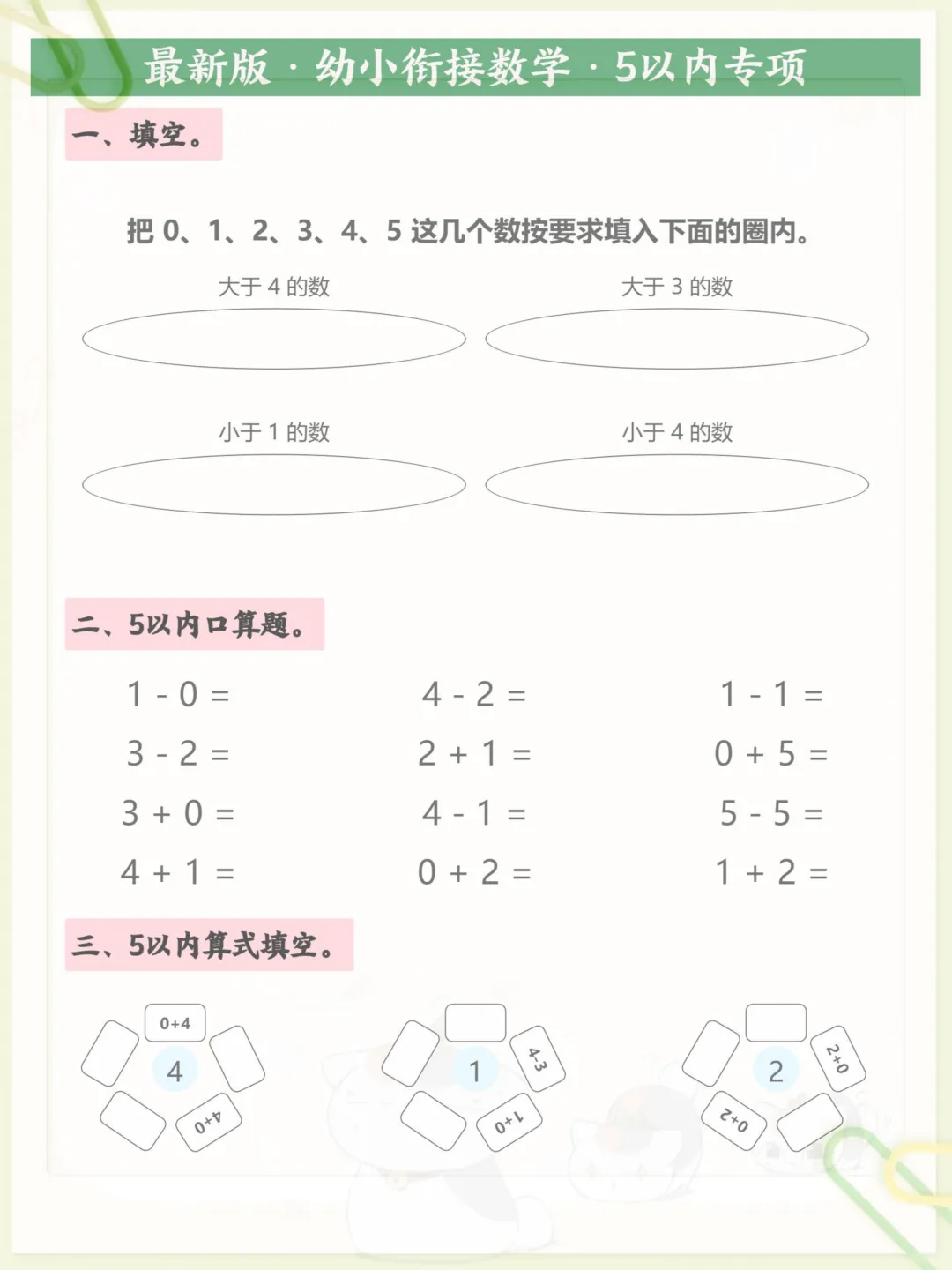 最新版·幼小衔接数学·5以内专项 十,电子版可打印