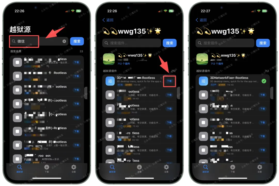 🔵主要功能:一款支持下载越狱源 deb 插件,可自由转换为有根/无根/隐根的工具