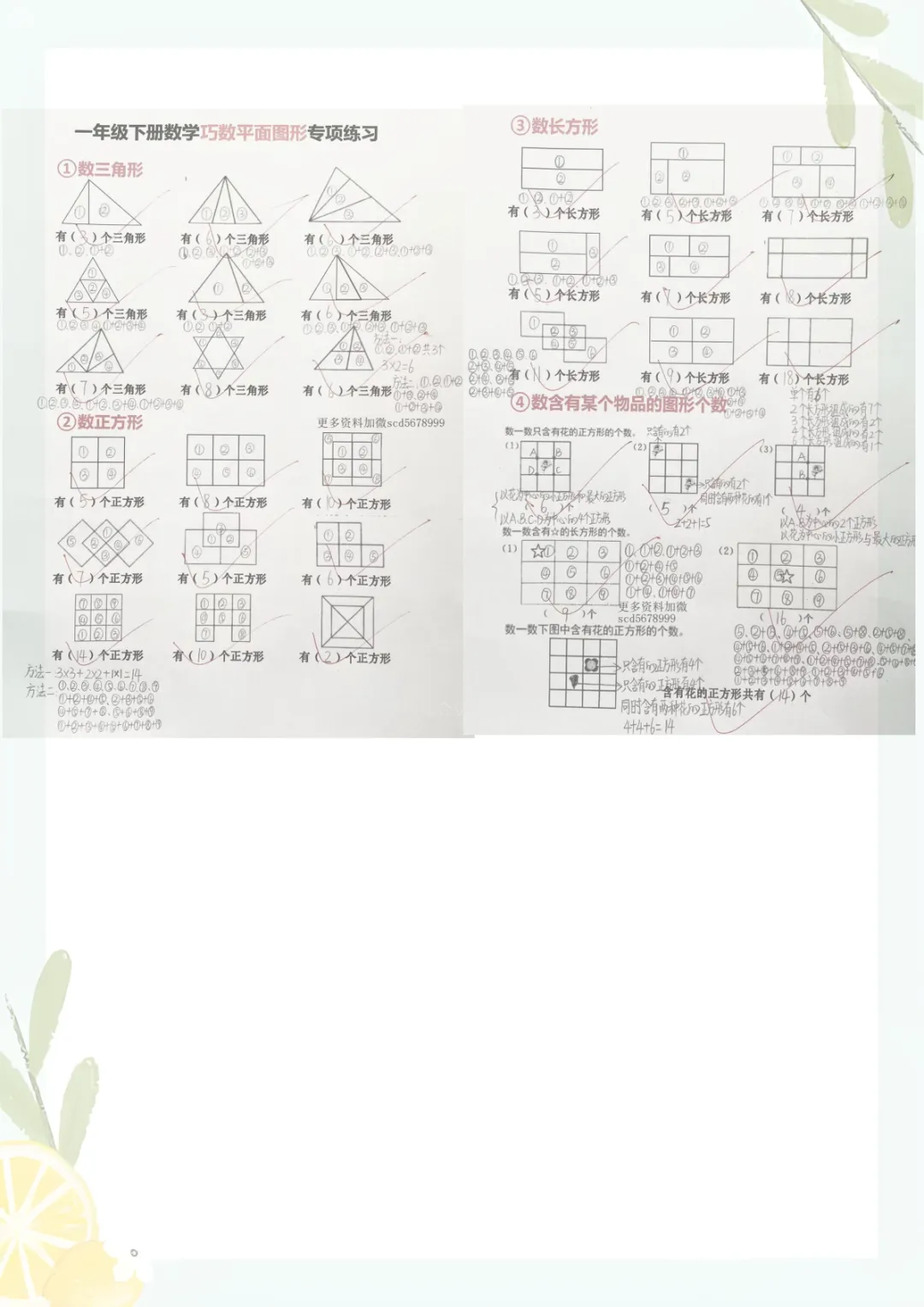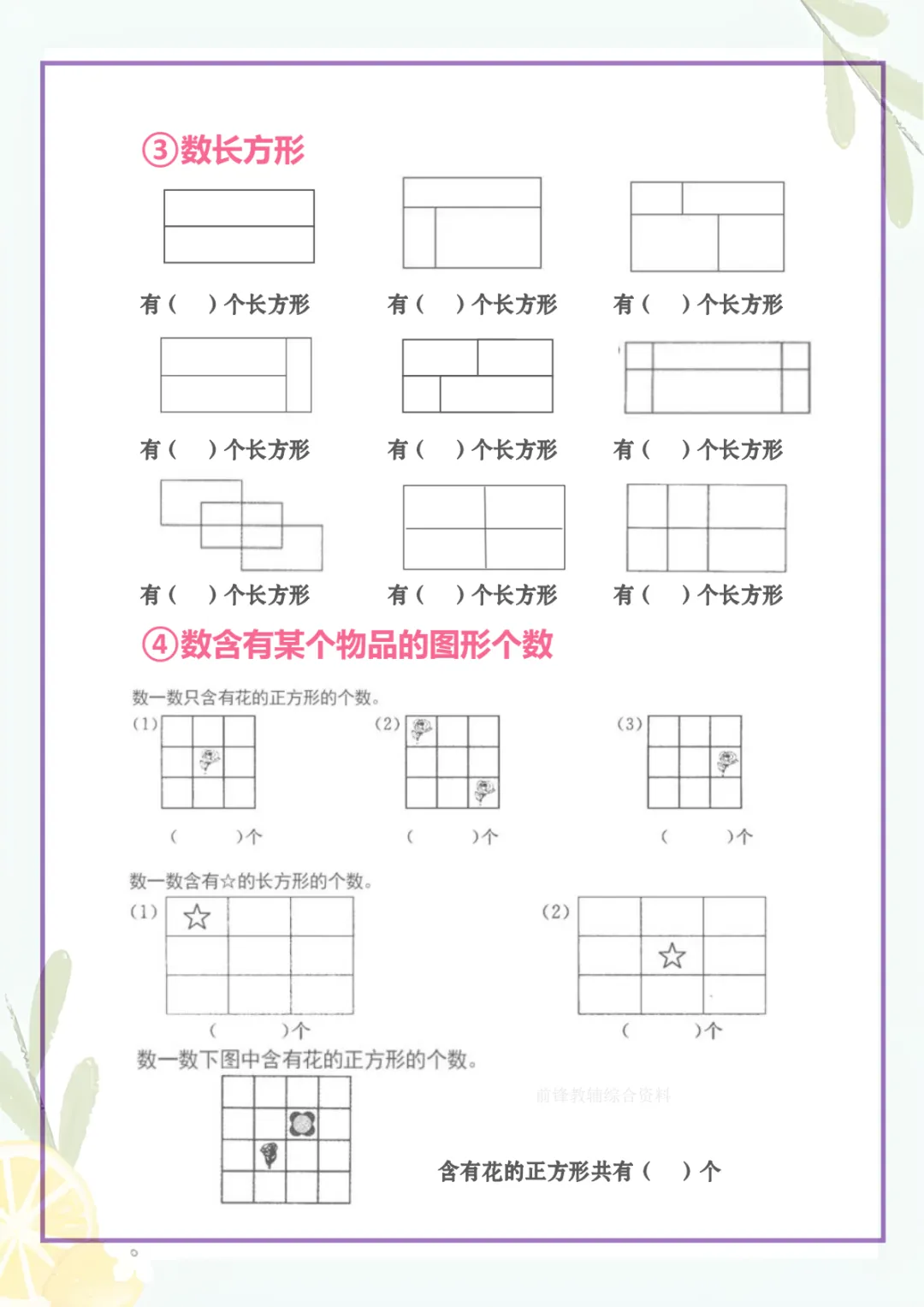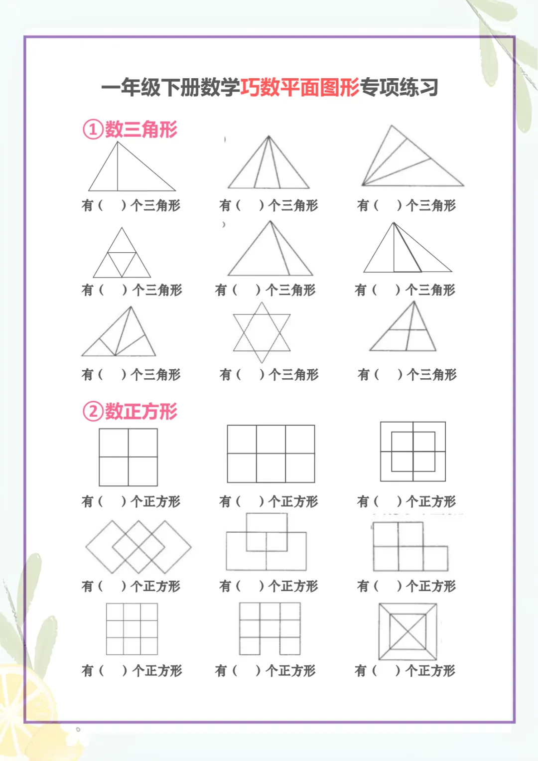 一年级下数学巧数平面图形专项练习,电子版可打印