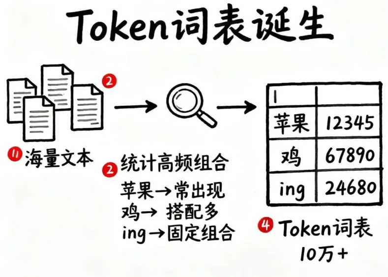 把那些高频、稳定的组合整理成 Token,并给每个 Token 一个编号。