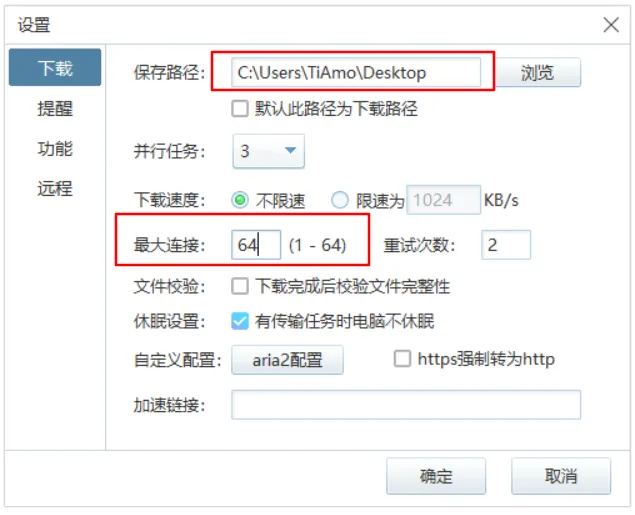 PC端比安卓端有一点好的地方就是PC端可以修改下载连接数,直接改到64