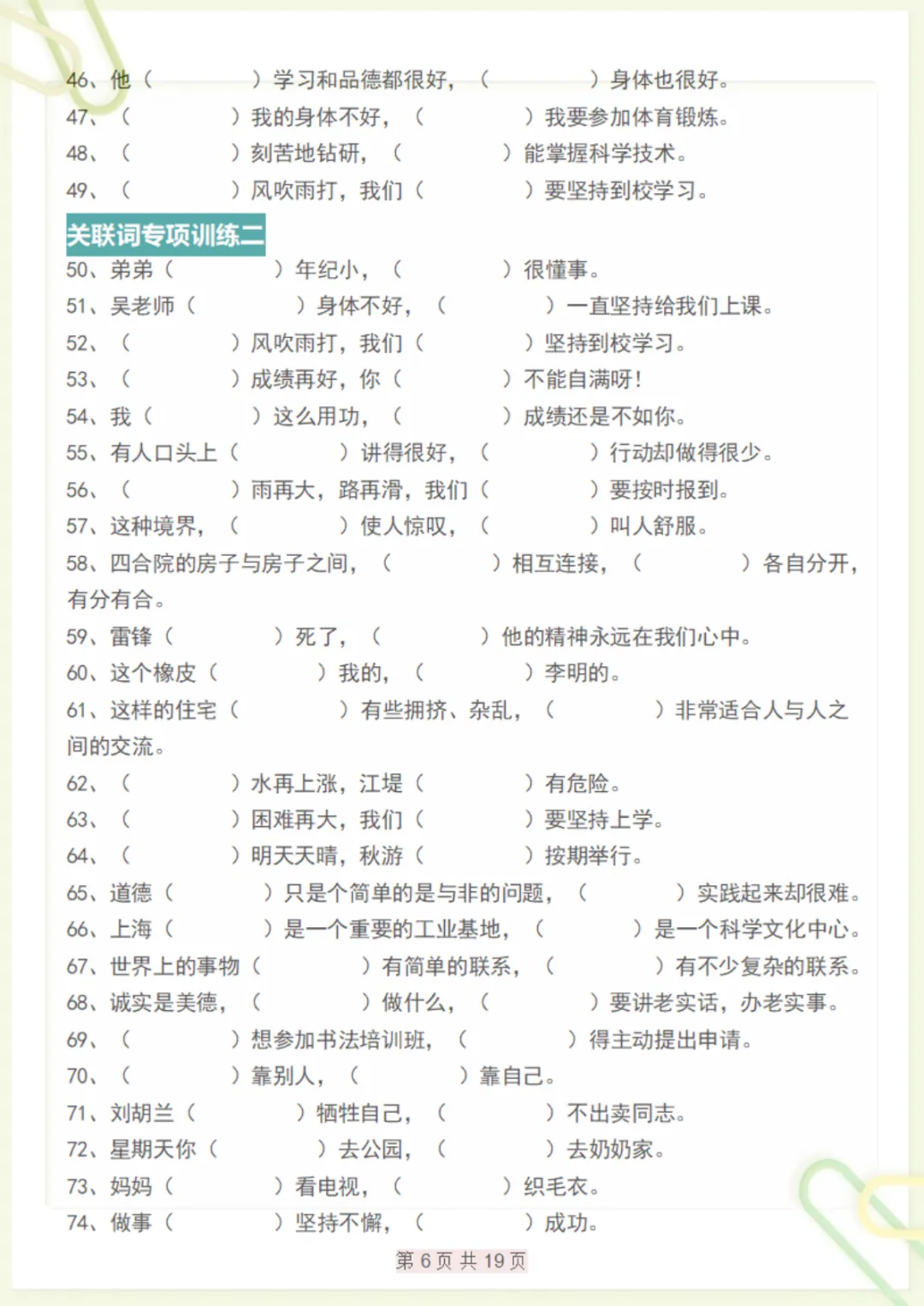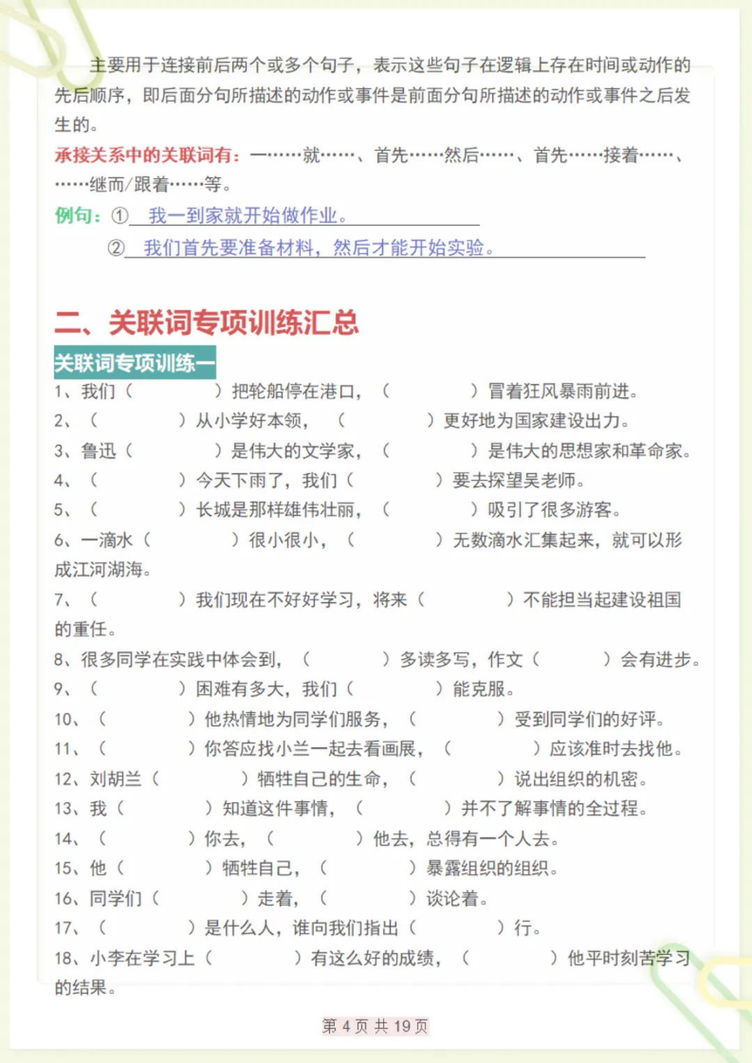 【《关联词》专项训练】三下语文,电子版可打印 None (温馨提示:文末有完整领取方式) 免费领取完整电子版 ①:点一点右下角的“赞”和“在看”,感谢!②:在公众号对话框中回复: 2348 ③: 点击小程序领取→电子版资料