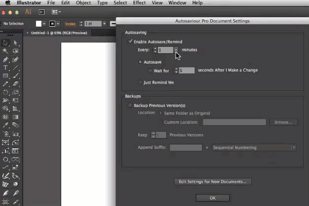 自动定时保存功能一直是Adobe系列软件的一大槽点之一,通关Autosaviour Pro可以实现对文件包括备份位置、备份文件等,防止出现AI卡死、文件未保存的情况。