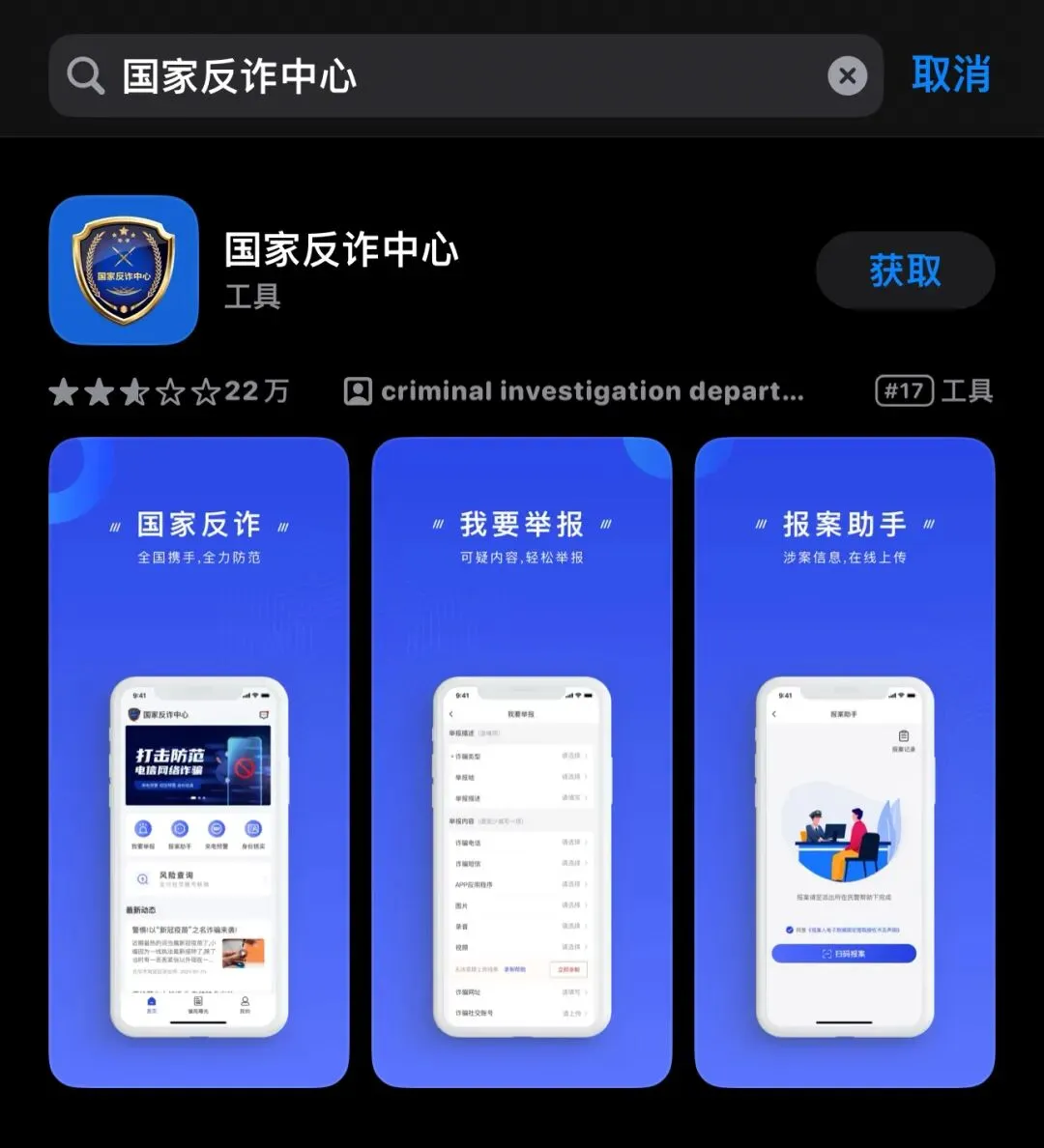 在安卓、苹果手机应用市场,搜索“国家反诈中心”即可下载。