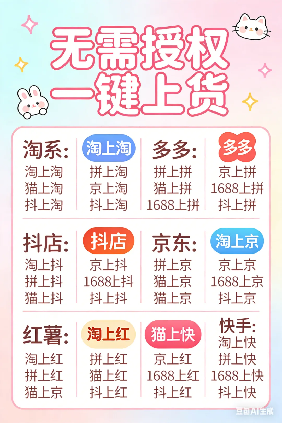 2. 货源一键铺货到淘宝/拼多多/抖店/小红书