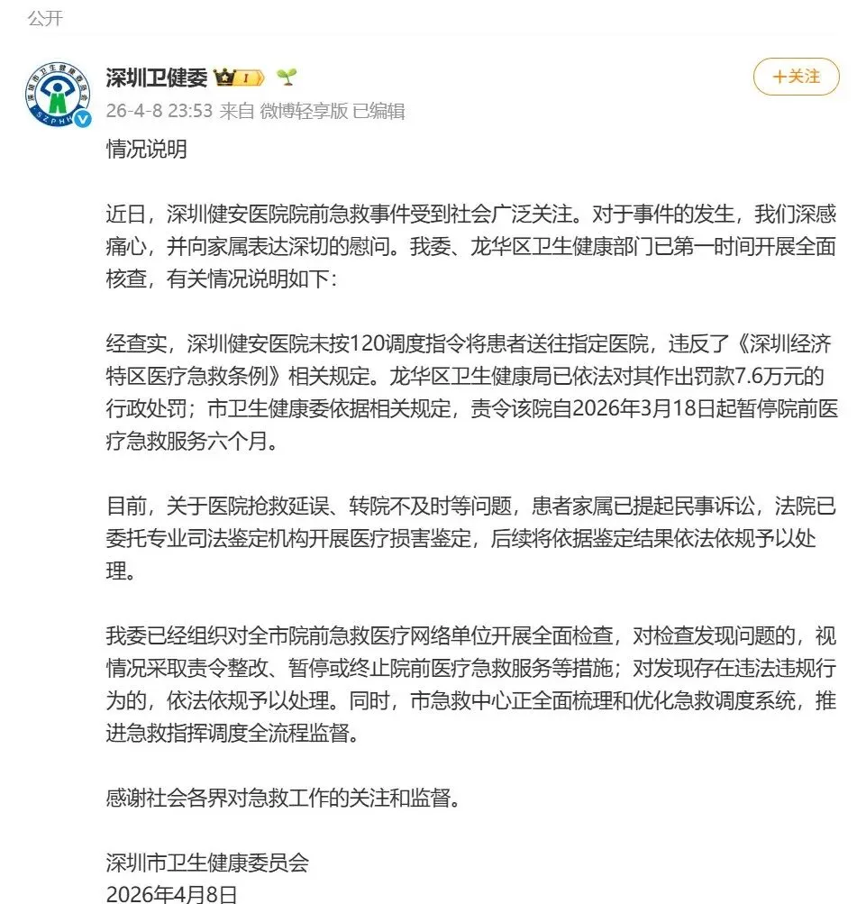 深圳卫健委发布情况说明