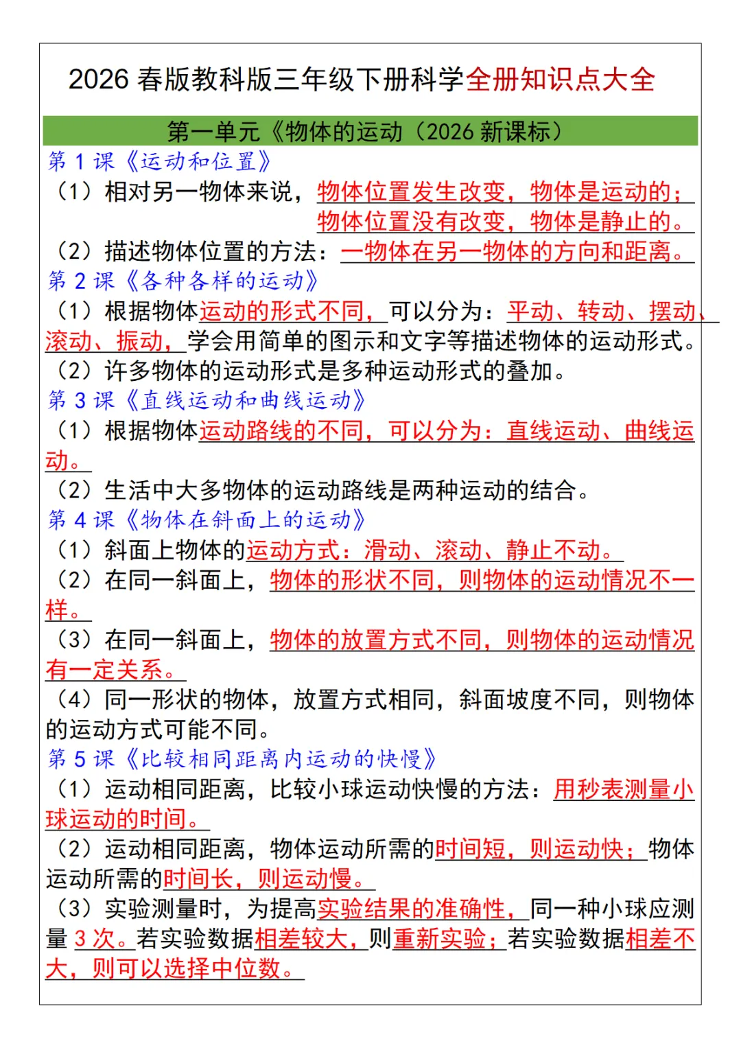 【免费下载】2026春新版三年级(下)科学 全册知识点大全《教科版》,PDF电子版,共7页,先保存,以免资源失效