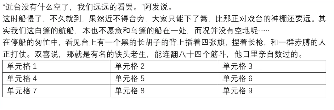 将最后的段落中添加一个3X3的表格。